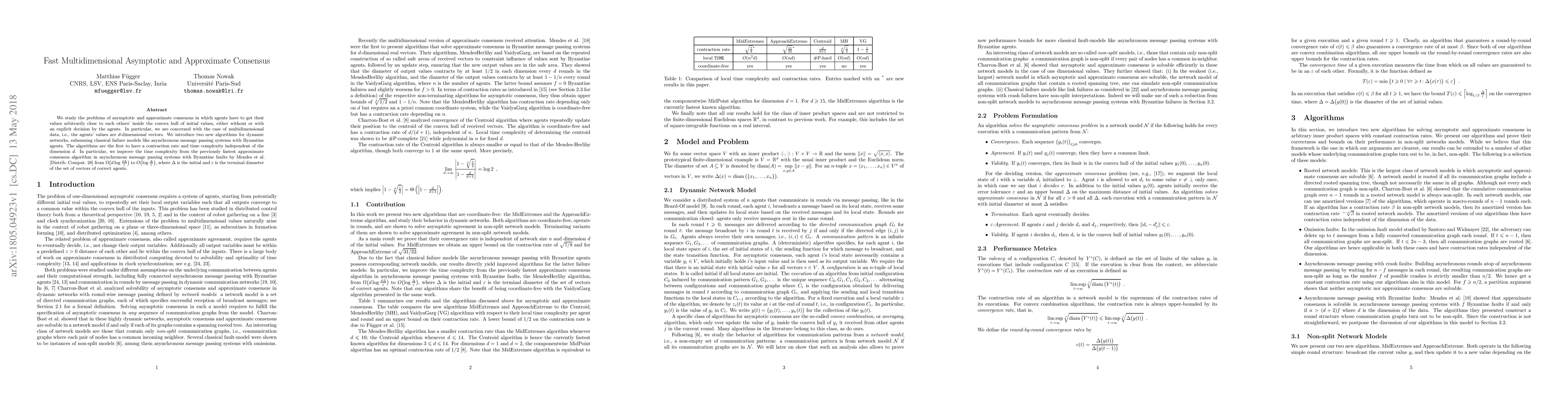 This paper introduces two new algorithms for achieving asymptotic and approximate consensus in dynamic networks with multidimensional data, improving time complexity from $\Omega(d \log(d\Delta / \varepsilon))$ to $O(\log(\Delta / \varepsilon))$, independent of the dimension $d$.