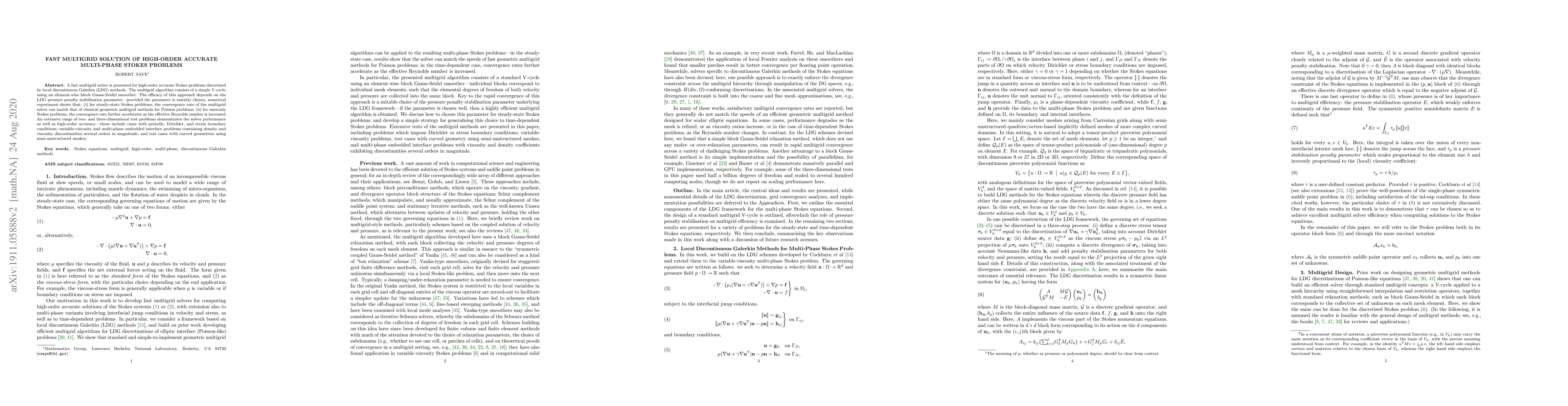 This paper presents a fast multigrid solver for high-order accurate Stokes problems using local discontinuous Galerkin methods, showing comparable convergence rates to classical methods for steady-state problems and accelerated convergence for unsteady flows as Reynolds number increases. Extensive tests demonstrate high-order accuracy and performance across various boundary conditions and complex geometries.