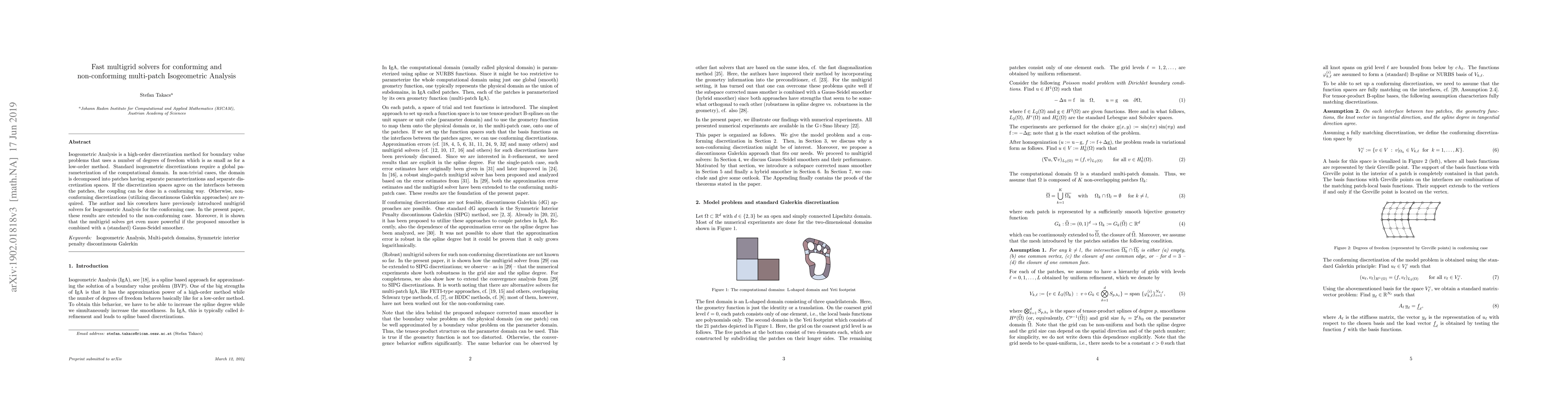 This paper extends multigrid solvers for Isogeometric Analysis to handle non-conforming multi-patch discretizations, improving efficiency by combining a proposed smoother with a standard Gauss-Seidel smoother. The method maintains high-order accuracy while reducing the number of degrees of freedom.