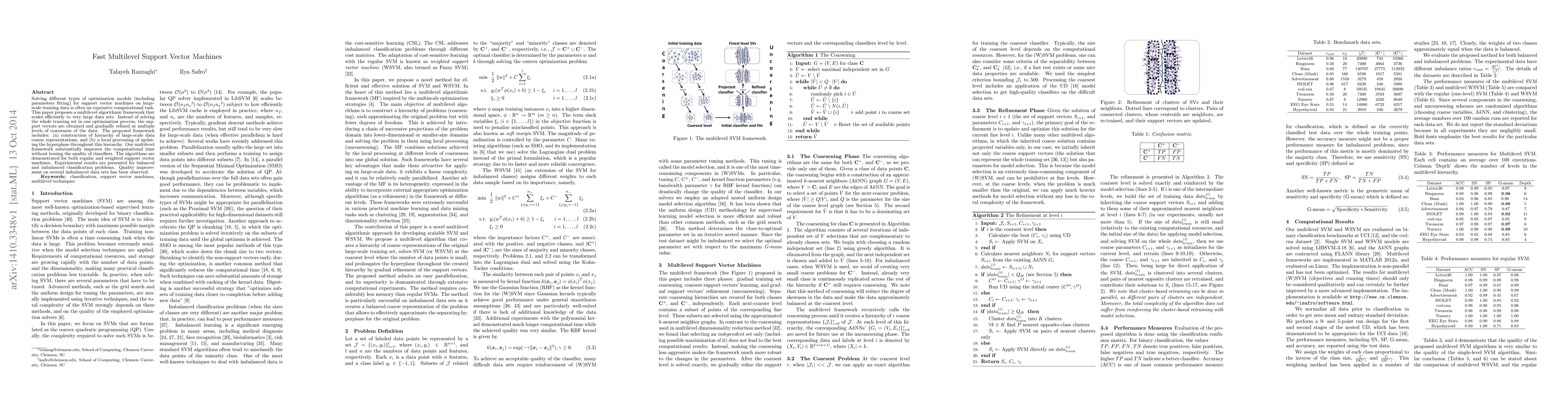 This paper introduces a multilevel algorithmic framework to efficiently solve large-scale optimization problems for support vector machines by refining support vectors at multiple levels of data coarseness. The proposed method significantly reduces computational time while maintaining classifier quality, demonstrated through experiments on balanced and imbalanced datasets.