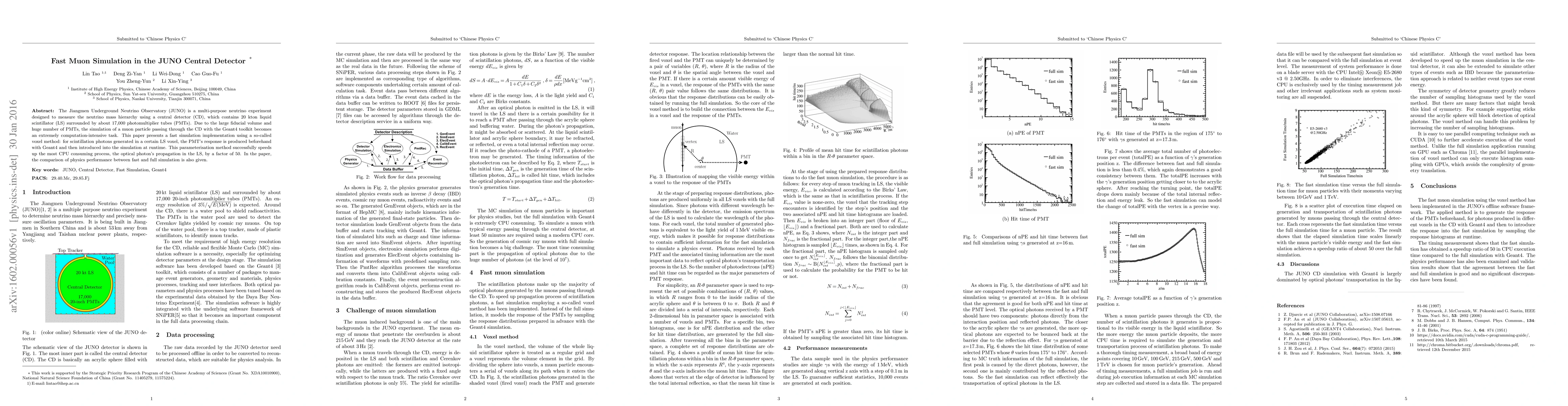 This paper presents a fast muon simulation method for the JUNO Central Detector using a voxel-based parameterization to speed up optical photon propagation, achieving a 50x reduction in computational time compared to full Geant4 simulations, while maintaining comparable physics performance.
