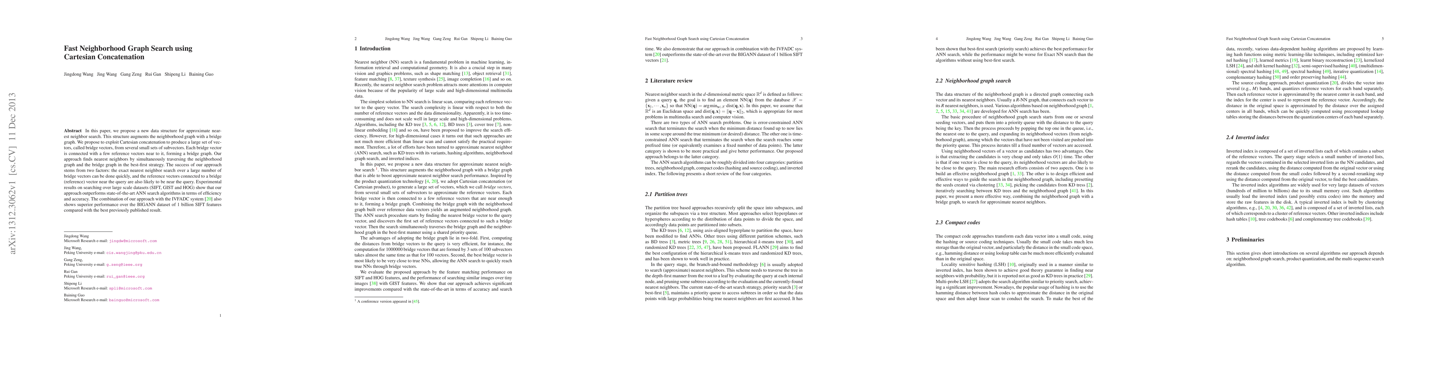 In this paper, we propose a new data structure for approximate nearest neighbor search. This structure augments the neighborhood graph with a bridge graph. We propose to exploit Cartesian concatenation to produce a large set of vectors, called bridge vectors, from several small sets of subvectors. Each bridge vector is connected with a few reference vectors near to it, forming a bridge graph. Our approach finds nearest neighbors by simultaneously traversing the neighborhood graph and the bridge graph in the best-first strategy. The success of our approach stems from two factors: the exact nearest neighbor search over a large number of bridge vectors can be done quickly, and the reference vectors connected to a bridge (reference) vector near the query are also likely to be near the query. Experimental results on searching over large scale datasets (SIFT, GIST and HOG) show that our approach outperforms state-of-the-art ANN search algorithms in terms of efficiency and accuracy. The combination of our approach with the IVFADC system also shows superior performance over the BIGANN dataset of $1$ billion SIFT features compared with the best previously published result.