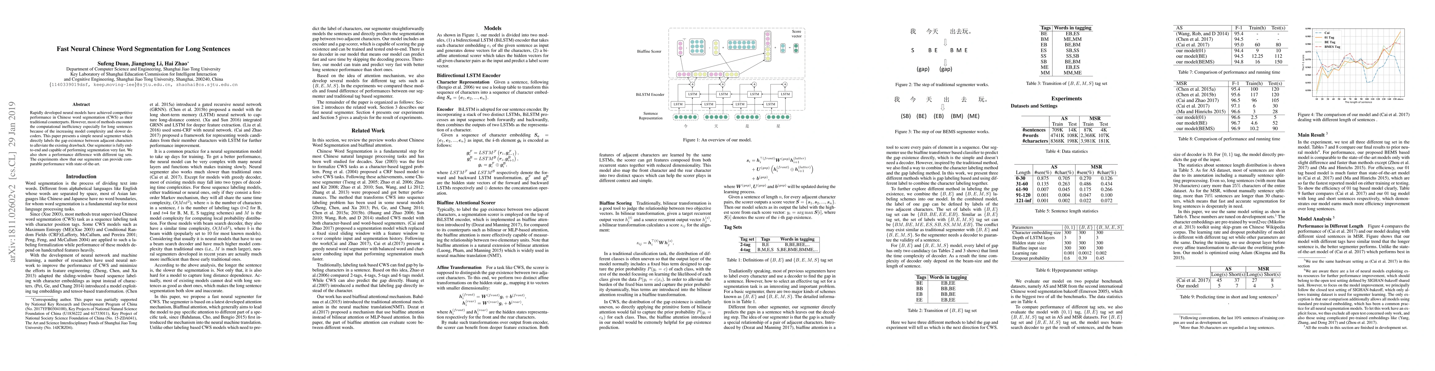 This paper introduces a fast neural model for Chinese word segmentation that directly labels gaps between characters, achieving efficient segmentation for long sentences. The proposed end-to-end segmenter demonstrates comparable performance to state-of-the-art methods while significantly reducing computational time.