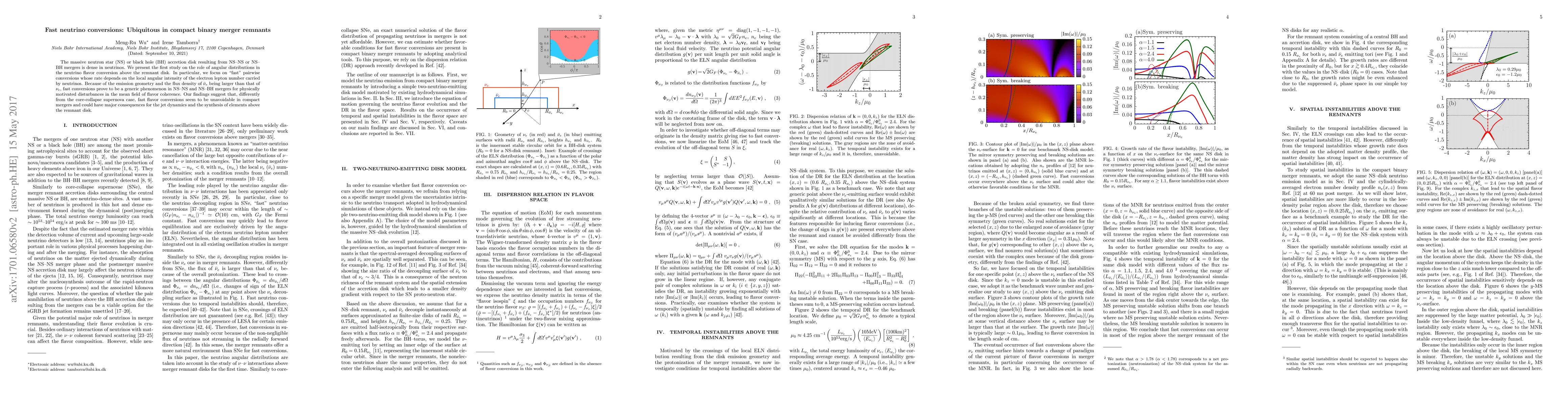 This paper investigates the role of angular distributions in neutrino flavor conversions above the dense neutrino environment of neutron star or black hole merger remnants, finding that "fast" neutrino conversions are ubiquitous due to the higher flux density of anti-electron neutrinos. These conversions, driven by the local angular intensity of electron lepton number, could significantly impact jet dynamics and element synthesis in such merger scenarios.
