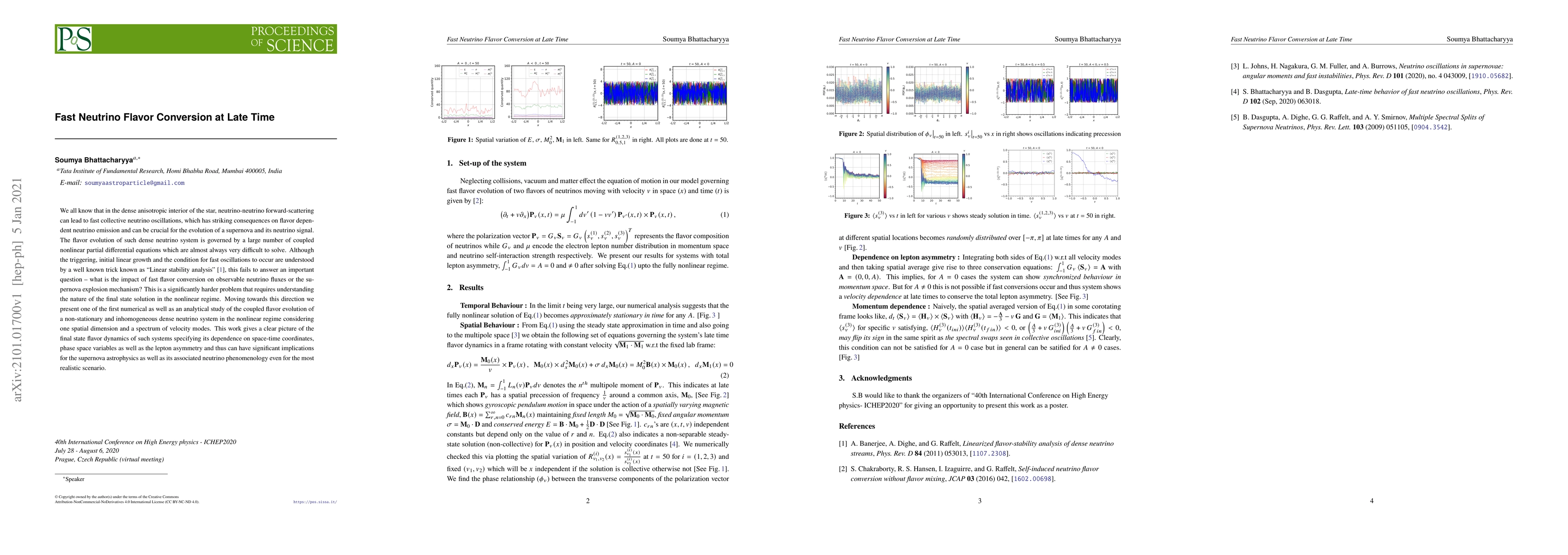 We all know that in the dense anisotropic interior of the star, neutrino-neutrino forward-scattering can lead to fast collective neutrino oscillations, which has striking consequences on flavor dependent neutrino emission and can be crucial for the evolution of a supernova and its neutrino signal. The flavor evolution of such dense neutrino system is governed by a large number of coupled nonlinear partial differential equations which are almost always very difficult to solve. Although the triggering, initial linear growth and the condition for fast oscillations to occur are understood by "Linear stability analysis" but this fails to answer an important question: "what is the impact of fast flavor conversion on observable neutrino fluxes or the supernova explosion mechanism?". This is a significantly harder problem that requires understanding the nature of the final state solution in the nonlinear regime. Moving towards this direction we present one of the first numerical as well as an analytical study of the coupled flavor evolution of a non-stationary and inhomogeneous dense neutrino system in the nonlinear regime considering one spatial dimension and a spectrum of velocity modes. This work gives a clear picture of the final state flavor dynamics of such systems specifying its dependence on space-time coordinates, phase space variables as well as the lepton asymmetry and thus can have significant implications for the supernova astrophysics as well as its associated neutrino phenomenology even for the most realistic scenario.