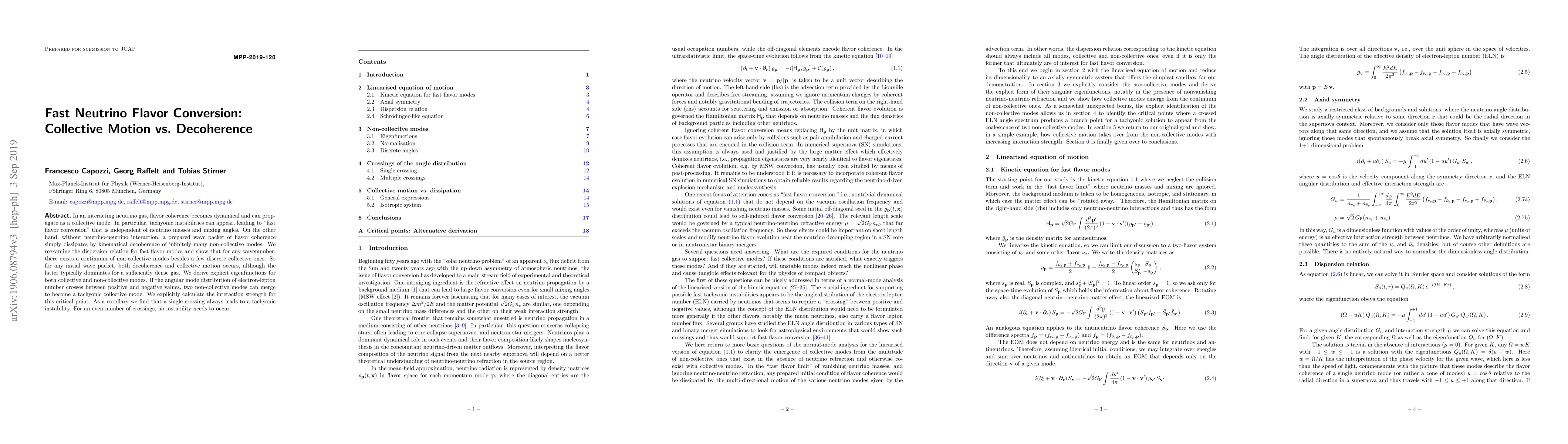 In an interacting neutrino gas, flavor coherence becomes dynamical and can propagate as a collective mode. In particular, tachyonic instabilities can appear, leading to "fast flavor conversion" that is independent of neutrino masses and mixing angles. On the other hand, without neutrino-neutrino interaction, a prepared wave packet of flavor coherence simply dissipates by kinematical decoherence of infinitely many non-collective modes. We reexamine the dispersion relation for fast flavor modes and show that for any wavenumber,there exists a continuum of non-collective modes besides a few discrete collective ones. So for any initial wave packet, both decoherence and collective motion occurs, although the latter typically dominates for a sufficiently dense gas. We derive explicit eigenfunctions for both collective and non-collective modes. If the angular mode distribution of electron-lepton number crosses between positive and negative values, two non-collective modes can merge to become a tachyonic collective mode. We explicitly calculate the interaction strength for this critical point. As a corollary we find that a single crossing always leads to a tachyonic instability. For an even number of crossings, no instability needs to occur.
