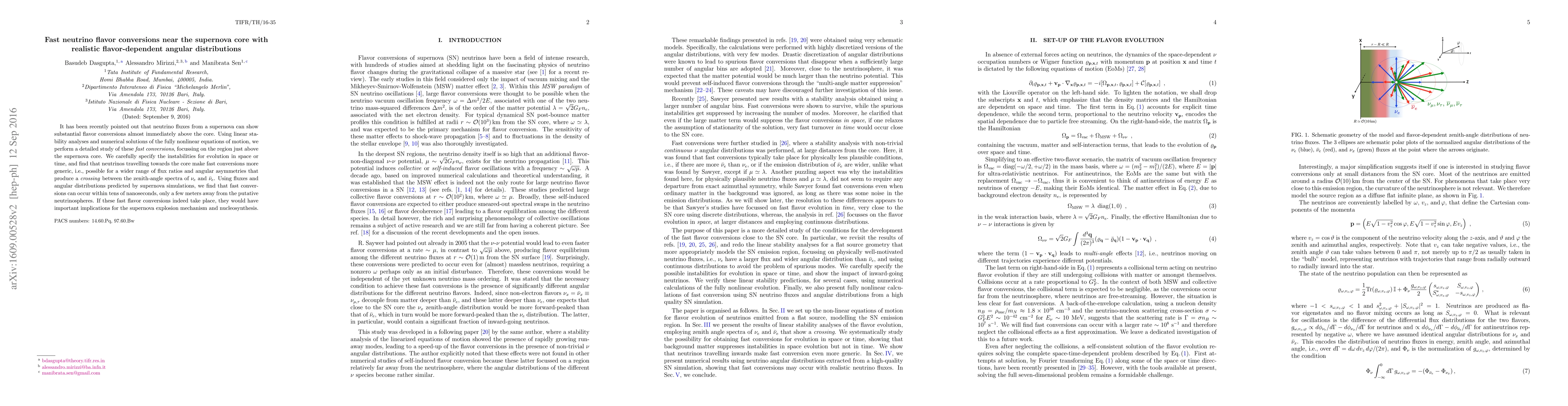 This paper investigates fast neutrino flavor conversions near the supernova core, finding that such conversions can occur within tens of nanoseconds due to instabilities in the neutrino fluxes and angular distributions. These rapid changes could significantly impact the supernova explosion mechanism and nucleosynthesis processes.