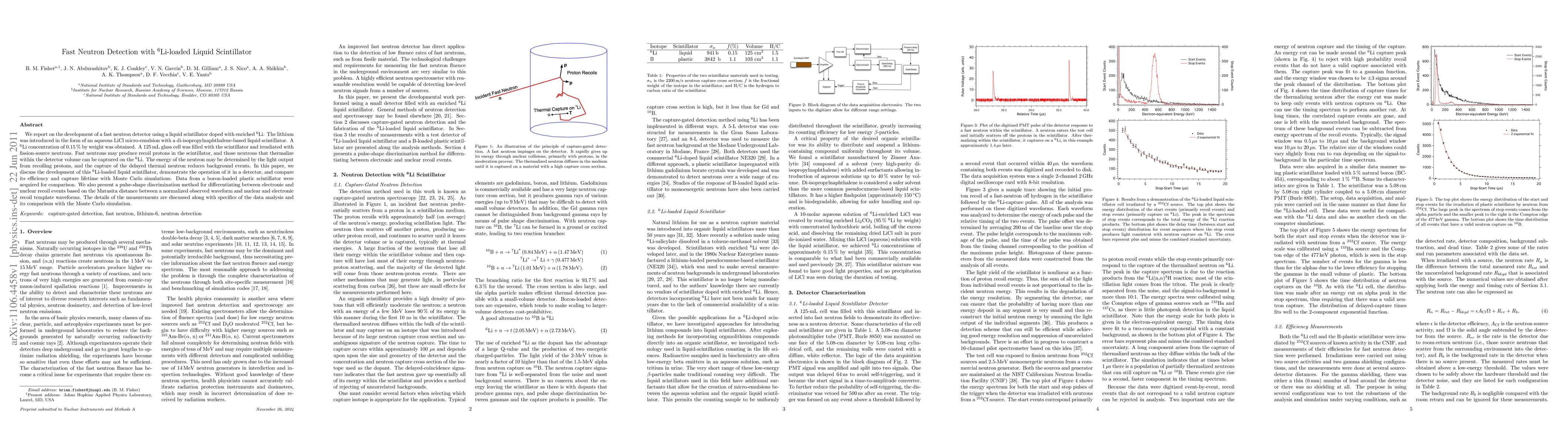 This paper details the development of a fast neutron detector using a 6Li-loaded liquid scintillator, demonstrating its operation and comparing its efficiency and capture lifetime with Monte Carlo simulations. A pulse-shape discrimination method is also presented to differentiate between electronic and nuclear recoil events.