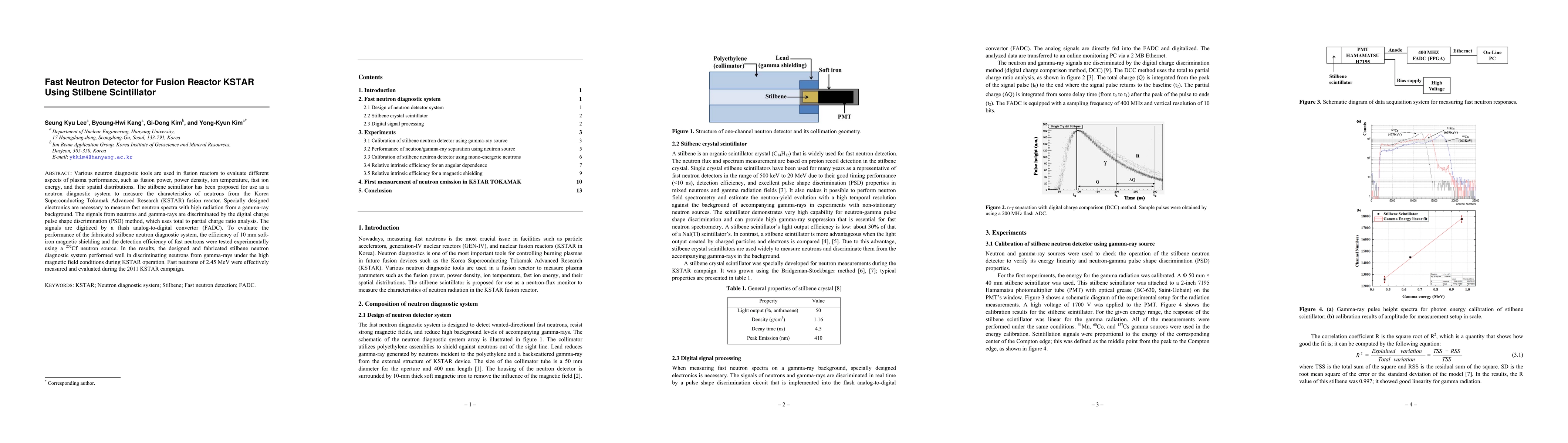 The research presents a stilbene scintillator-based neutron detector for KSTAR fusion reactor, designed to withstand high radiation and magnetic fields. It uses digital charge pulse shape discrimination and flash ADC for neutron-gamma discrimination. Experiments with 252Cf source confirmed its efficiency in distinguishing neutrons from gamma-rays, successfully measuring 2.45 MeV fast neutrons during a KSTAR campaign.
