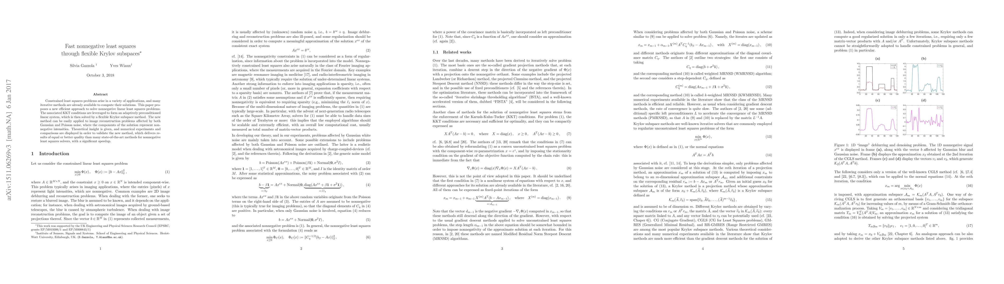 Constrained least squares problems arise in a variety of applications, and many iterative methods are already available to compute their solutions. This paper proposes a new efficient approach to solve nonnegative linear least squares problems. The associated KKT conditions are leveraged to form an adaptively preconditioned linear system, which is then solved by a flexible Krylov subspace method. The new method can be easily applied to image reconstruction problems affected by both Gaussian and Poisson noise, where the components of the solution represent nonnegative intensities. {Theoretical insight is given, and} numerical experiments and comparisons are displayed in order to validate the new method, which delivers results of equal or better quality than many state-of-the-art methods for nonnegative least squares solvers, with a significant speedup.