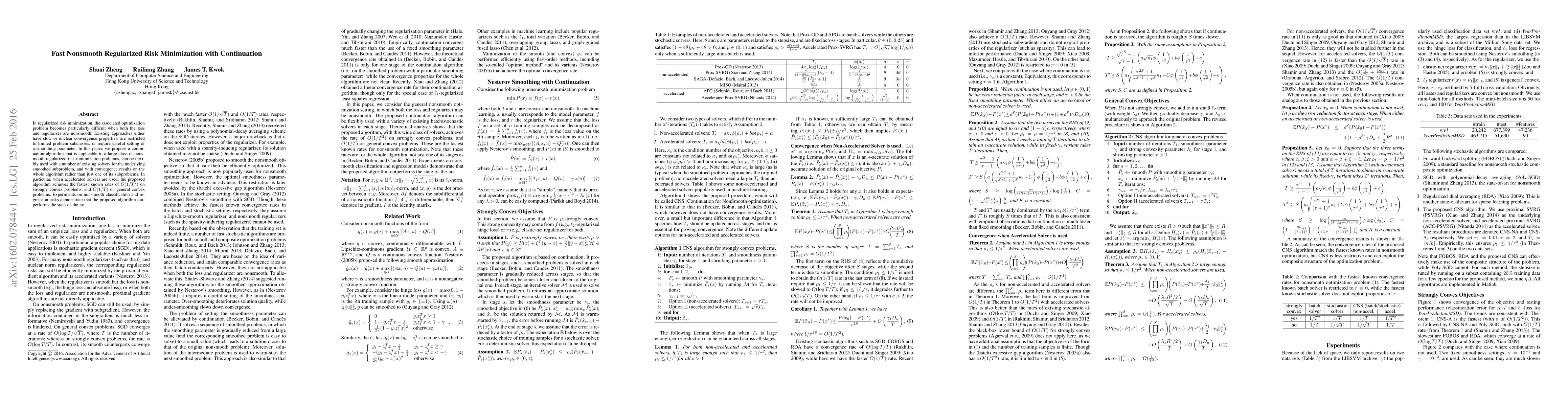 This paper introduces a continuation algorithm for fast nonsmooth regularized risk minimization, achieving optimal convergence rates of $O(1/T^2)$ for strongly convex problems and $O(1/T)$ for general convex problems. The algorithm is versatile and outperforms existing methods in nonsmooth classification and regression tasks.