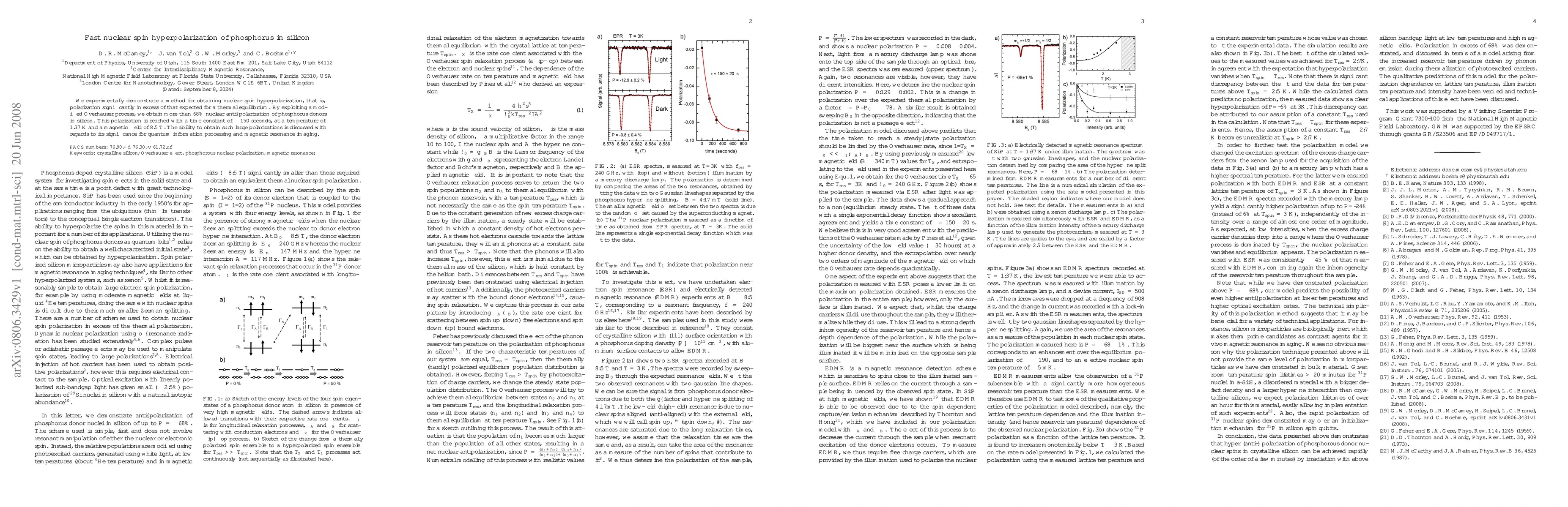 This paper demonstrates a method for achieving nuclear spin hyperpolarization of phosphorus in silicon using a modified Overhauser process, reaching over 68% polarization in ~150 seconds at 1.37 K and 8.5 T, highlighting its potential for quantum information and MRI applications.