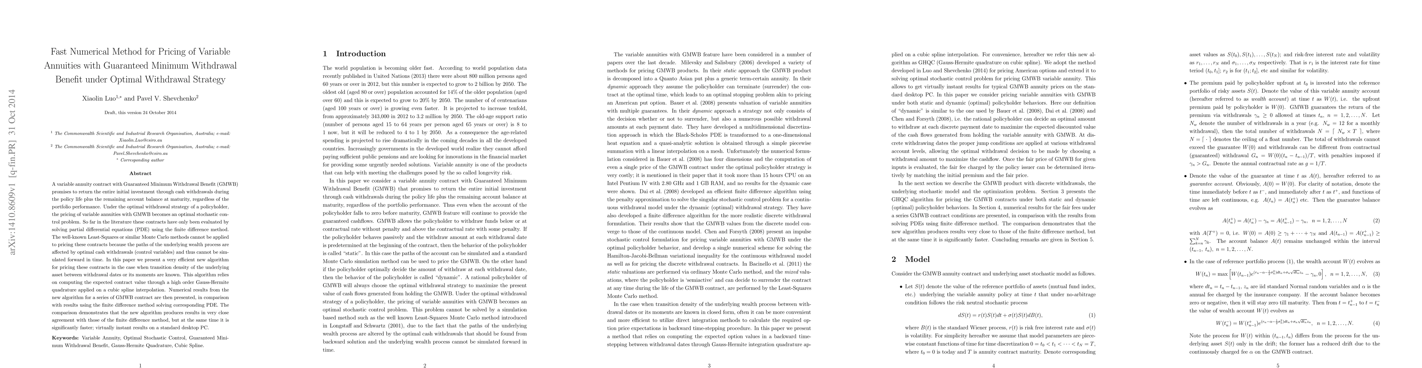 A variable annuity contract with Guaranteed Minimum Withdrawal Benefit (GMWB) promises to return the entire initial investment through cash withdrawals during the policy life plus the remaining account balance at maturity, regardless of the portfolio performance. Under the optimal withdrawal strategy of a policyholder, the pricing of variable annuities with GMWB becomes an optimal stochastic control problem. So far in the literature these contracts have only been evaluated by solving partial differential equations (PDE) using the finite difference method. The well-known Least-Squares or similar Monte Carlo methods cannot be applied to pricing these contracts because the paths of the underlying wealth process are affected by optimal cash withdrawals (control variables) and thus cannot be simulated forward in time. In this paper we present a very efficient new algorithm for pricing these contracts in the case when transition density of the underlying asset between withdrawal dates or its moments are known. This algorithm relies on computing the expected contract value through a high order Gauss-Hermite quadrature applied on a cubic spline interpolation. Numerical results from the new algorithm for a series of GMWB contract are then presented, in comparison with results using the finite difference method solving corresponding PDE. The comparison demonstrates that the new algorithm produces results in very close agreement with those of the finite difference method, but at the same time it is significantly faster; virtually instant results on a standard desktop PC.