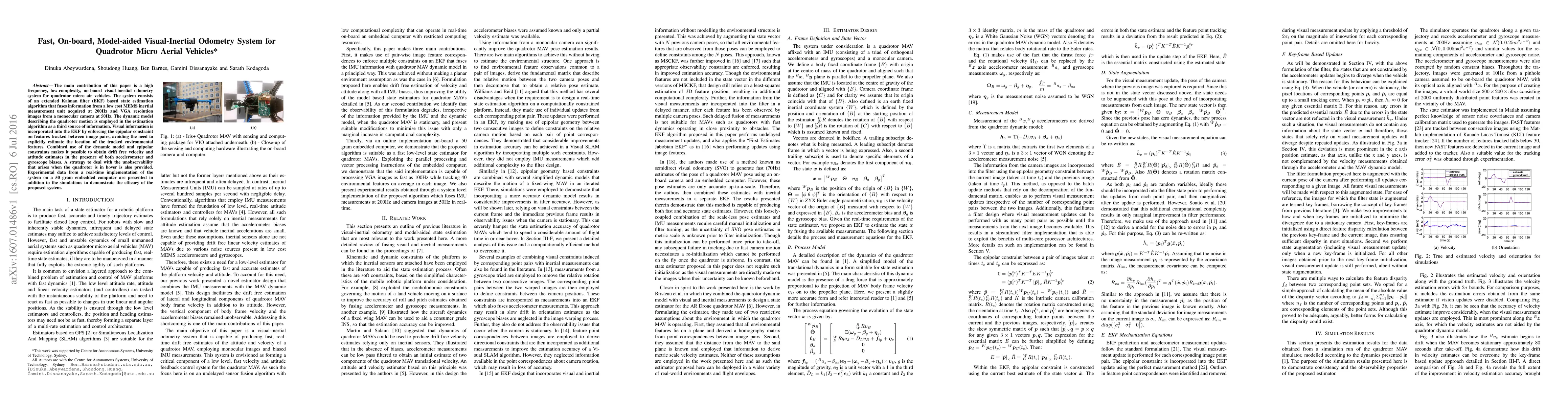 This paper proposes a fast and low-complexity visual-inertial odometry system for quadrotor micro aerial vehicles, achieving drift-free velocity and attitude estimates with high accuracy.