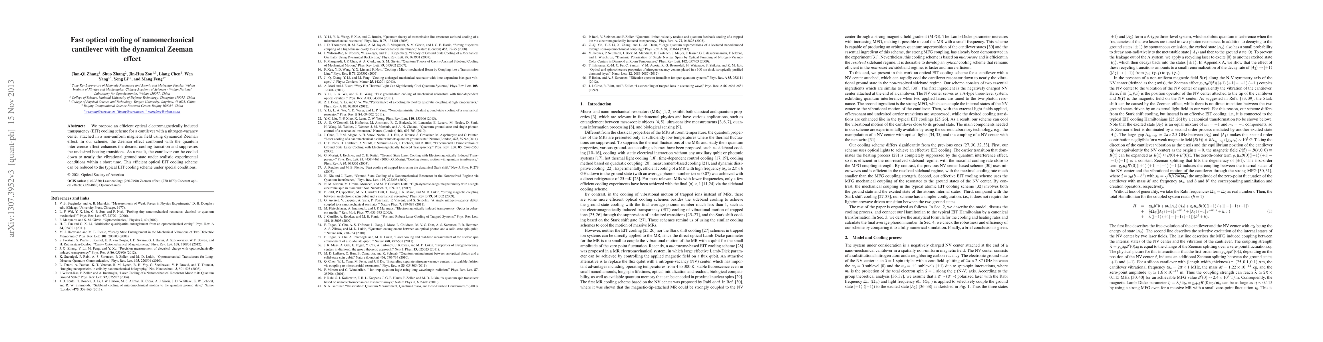 This paper proposes an efficient optical cooling method for a nanomechanical cantilever using electromagnetically induced transparency (EIT) and the dynamical Zeeman effect, achieving near-ground state cooling in a short time by enhancing cooling transitions and suppressing heating. This method is adaptable to standard EIT cooling under specific conditions.