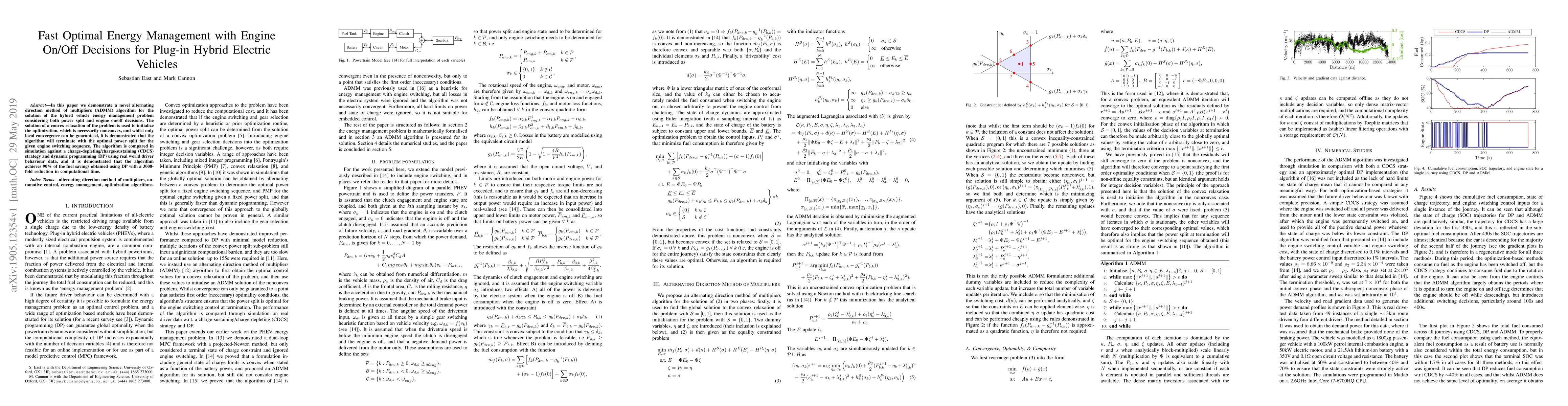 A new algorithm called ADMM is used to optimize energy management in plug-in hybrid electric vehicles, achieving 90% of fuel savings with a 3000-fold reduction in computational time.