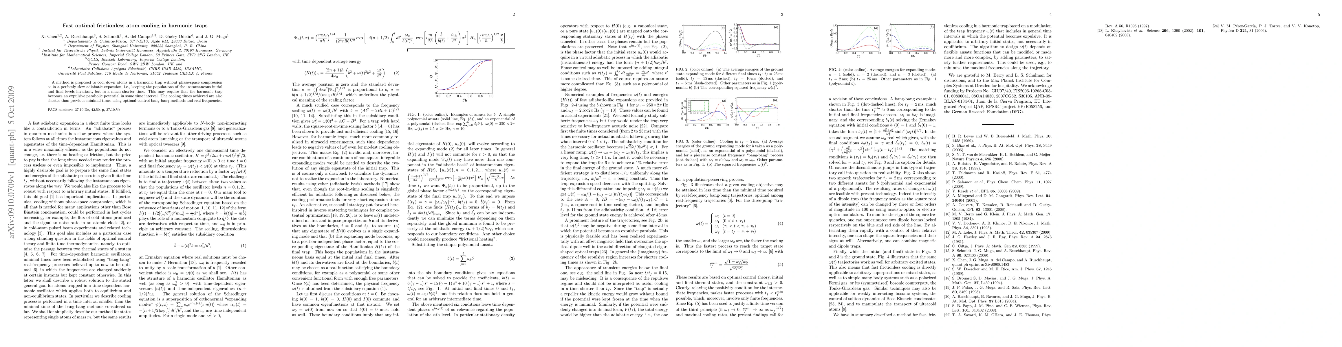 A method is proposed to cool down atoms in a harmonic trap without phase-space compression as in a perfectly slow adiabatic expansion, i.e., keeping the populations of the instantaneous initial and final levels invariant, but in a much shorter time. This may require that the harmonic trap becomes an expulsive parabolic potential in some time interval. The cooling times achieved are also shorter than previous minimal times using optimal-control bang-bang methods and real frequencies.