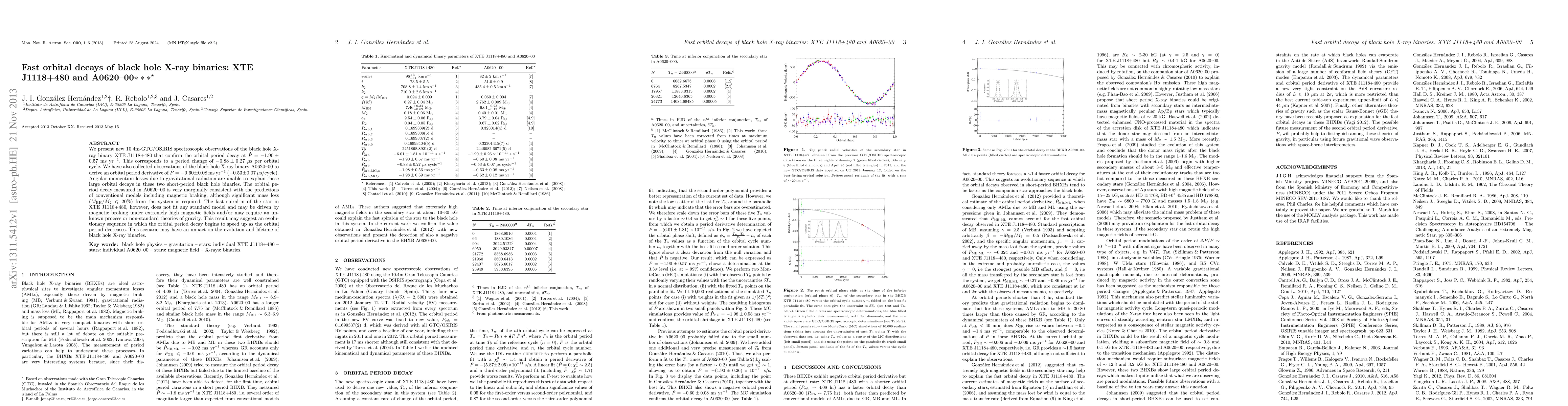 We present new 10.4m-GTC/OSIRIS spectroscopic observations of the black hole X-ray binary \mbox{XTE J1118+480} that confirm the orbital period decay at $\dot P=-1.90\pm0.57$ ms yr$^{-1}$. This corresponds to a period change of $-0.88\pm0.27$ $\mu $s per orbital cycle. We have also collected observations of the black hole X-ray binary A0620--00 to derive an orbital period derivative of $\dot P=-0.60\pm0.08$ ms yr$^{-1}$ ($-0.53\pm0.07$ $\mu $s/cycle). Angular momentum losses due to gravitational radiation are unable to explain these large orbital decays in these two short-period black hole binaries. The orbital period decay measured in A0620--00 is very marginally consistent with the predictions of conventional models including magnetic braking, although significant mass loss ($\dot M_{\rm BH} / \dot M_2 \le 20\%$) from the system is required. The fast spiral-in of the star in XTE J1118+480, however, does not fit any standard model and may be driven by magnetic braking under extremely high magnetic fields and/or may require an unknown process or non-standard theories of gravity. This result may suggest an evolutionary sequence in which the orbital period decay begins to speed up as the orbital period decreases. This scenario may have an impact on the evolution and lifetime of black hole X-ray binaries.