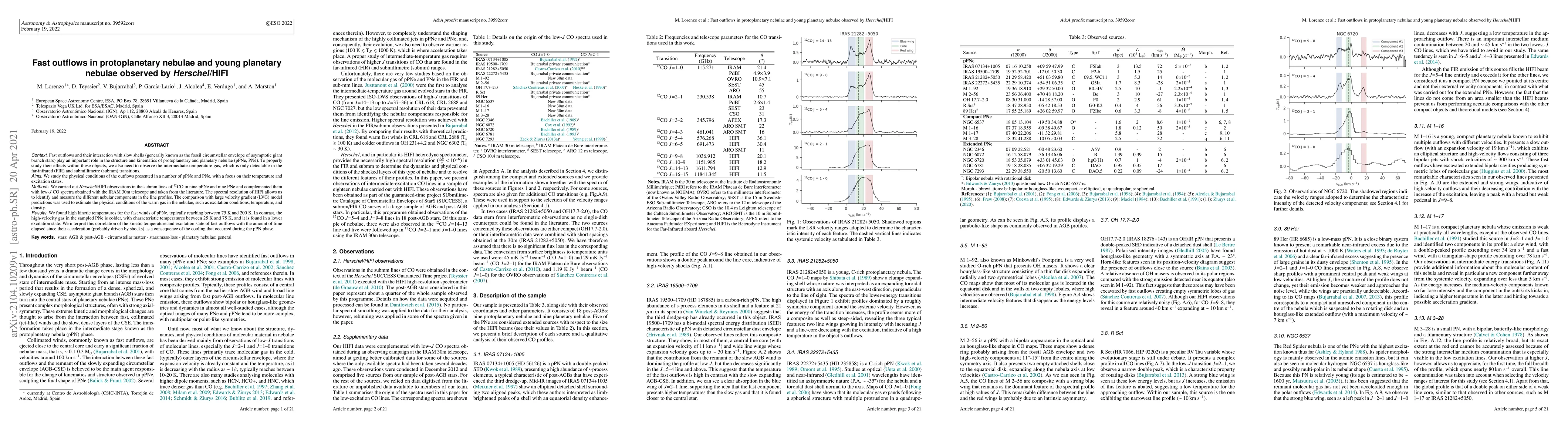 This study, using Herschel/HIFI, examines fast outflows in protoplanetary nebulae (pPNe) and young planetary nebulae (PNe). It reveals high kinetic temperatures (75-200K) for pPNe outflows, indicating recent acceleration, likely via shocks. In contrast, PNe outflows are colder (25-75K), suggesting more time has passed since acceleration. This correlation is attributed to cooling during the pPN phase.