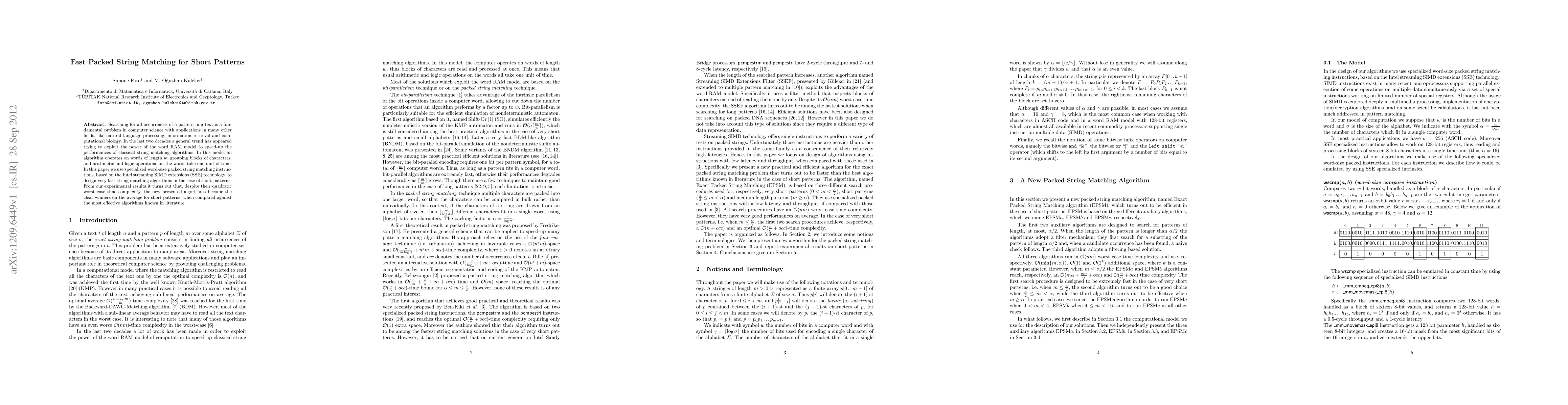 The paper presents a novel packed string matching algorithm (EPSM) based on Intel's Streaming SIMD Extensions (SSE) technology, utilizing specialized word-size matching instructions for efficient pattern searching in texts.