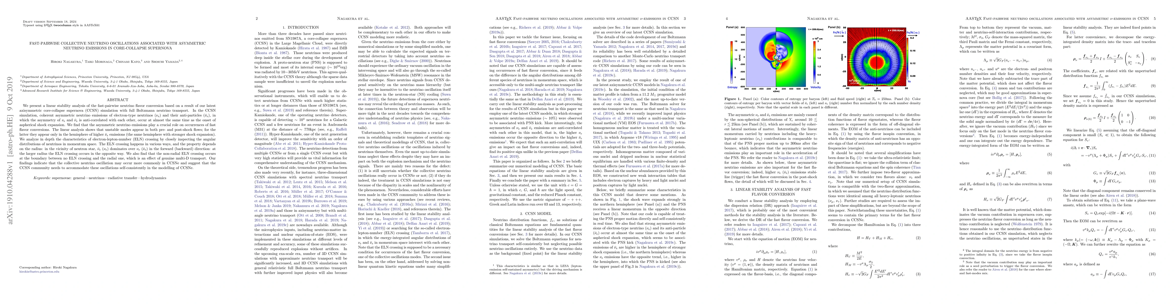 This paper presents a linear stability analysis of fast-pairwise neutrino flavor conversions in asymmetric neutrino emissions from a core-collapse supernova, revealing unstable modes in both pre- and post-shock flows. The study suggests that collective neutrino oscillations are more common in such events, necessitating their inclusion in supernova modeling.