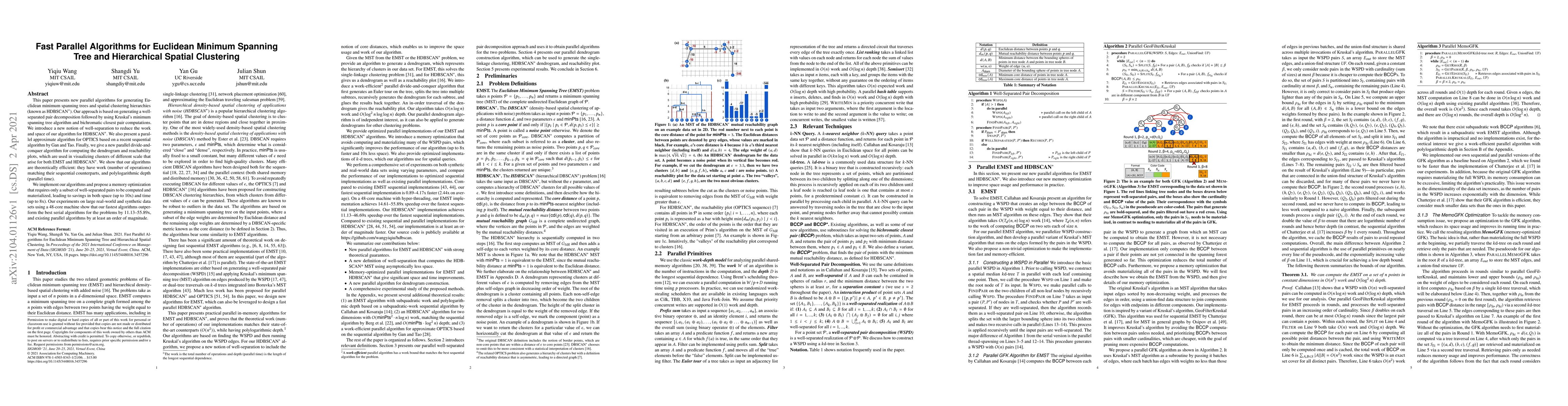 This paper introduces parallel algorithms for Euclidean minimum spanning trees and spatial clustering hierarchies, achieving significant speedups over serial and existing parallel methods. The algorithms leverage well-separated pair decomposition and parallel Kruskal's MST, with memory optimizations leading to substantial reductions in space and time.