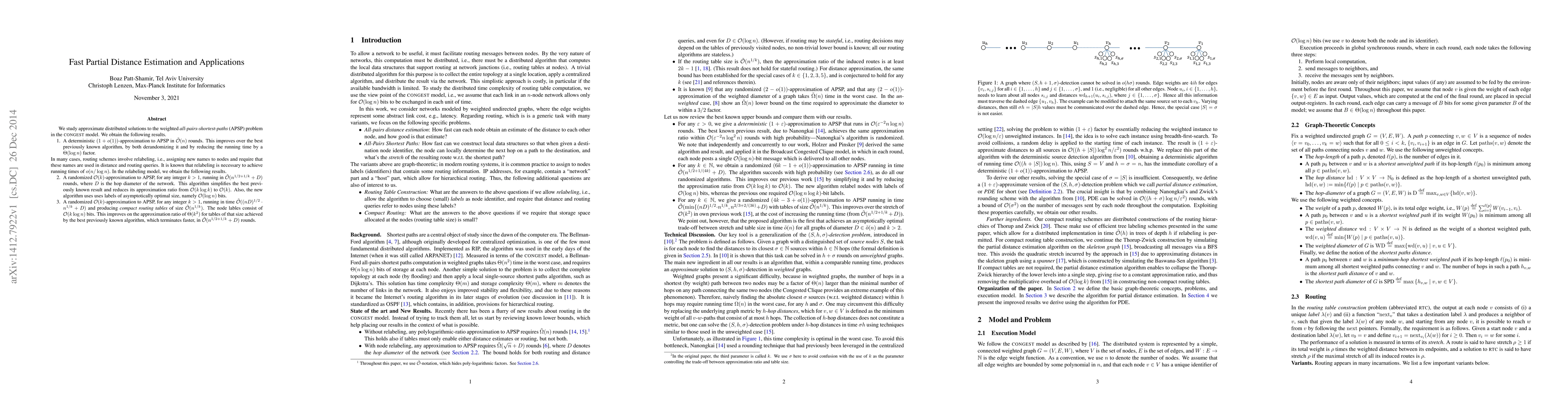 We study approximate distributed solutions to the weighted {\it all-pairs-shortest-paths} (APSP) problem in the CONGEST model. We obtain the following results. $1.$ A deterministic $(1+o(1))$-approximation to APSP in $\tilde{O}(n)$ rounds. This improves over the best previously known algorithm, by both derandomizing it and by reducing the running time by a $\Theta(\log n)$ factor. In many cases, routing schemes involve relabeling, i.e., assigning new names to nodes and require that these names are used in distance and routing queries. It is known that relabeling is necessary to achieve running times of $o(n/\log n)$. In the relabeling model, we obtain the following results. $2.$ A randomized $O(k)$-approximation to APSP, for any integer $k>1$, running in $\tilde{O}(n^{1/2+1/k}+D)$ rounds, where $D$ is the hop diameter of the network. This algorithm simplifies the best previously known result and reduces its approximation ratio from $O(k\log k)$ to $O(k)$. Also, the new algorithm uses uses labels of asymptotically optimal size, namely $O(\log n)$ bits. $3.$ A randomized $O(k)$-approximation to APSP, for any integer $k>1$, running in time $\tilde{O}((nD)^{1/2}\cdot n^{1/k}+D)$ and producing {\it compact routing tables} of size $\tilde{O}(n^{1/k})$. The node lables consist of $O(k\log n)$ bits. This improves on the approximation ratio of $\Theta(k^2)$ for tables of that size achieved by the best previously known algorithm, which terminates faster, in $\tilde{O}(n^{1/2+1/k}+D)$ rounds.