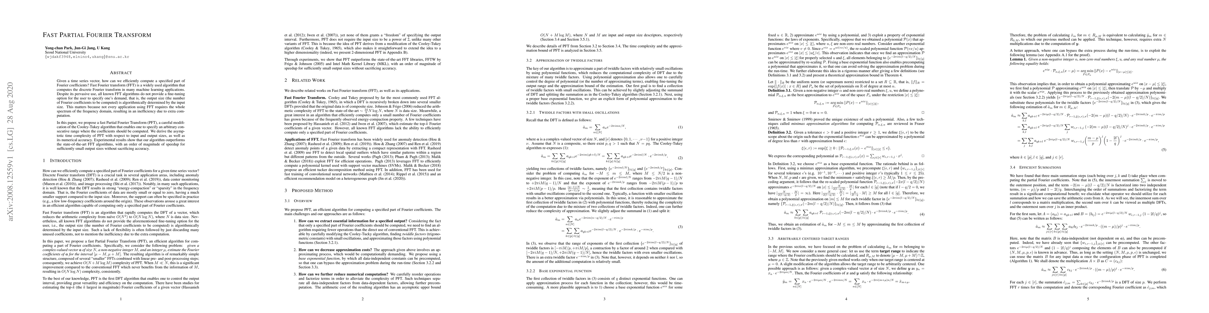 This paper proposes a fast Partial Fourier Transform (PFT) to compute a specified subset of Fourier coefficients efficiently. Unlike traditional FFT algorithms, PFT allows users to specify the desired output size, avoiding unnecessary computations for partial frequency domain needs, and demonstrates significant speedups for smaller output sizes while maintaining numerical accuracy.