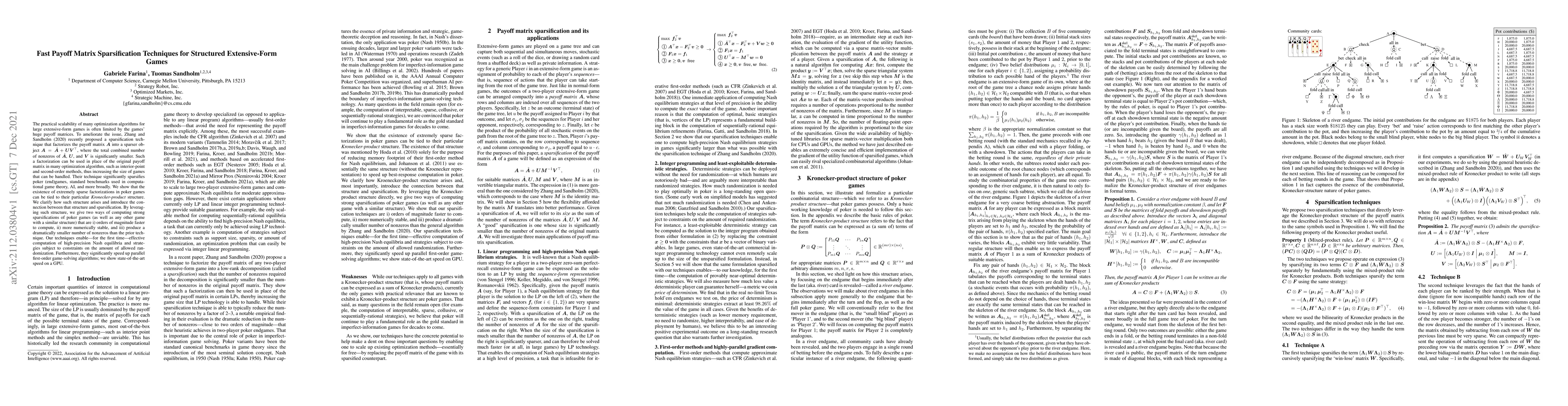 This paper proposes advanced techniques for sparsifying payoff matrices in extensive-form games, particularly poker games, by leveraging their Kronecker-product structure. The new methods are significantly faster, more stable, and produce sparser representations, enabling effective computation of high-precision Nash equilibria and speeding up parallel game-solving algorithms.