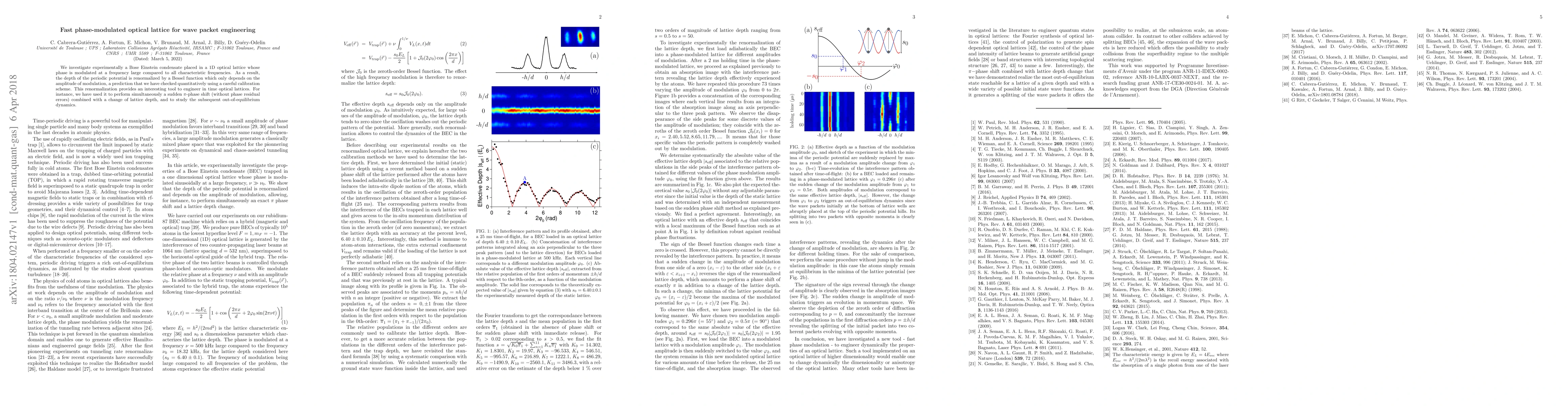We investigate experimentally a Bose Einstein condensate placed in a 1D optical lattice whose phase is modulated at a frequency large compared to all characteristic frequencies. As a result, the depth of the periodic potential is renormalized by a Bessel function which only depends on the amplitude of modulation, a prediction that we have checked quantitatively using a careful calibration scheme. This renormalization provides an interesting tool to engineer in time optical lattices. For instance, we have used it to perform simultaneously a sudden $\pi$-phase shift (without phase residual errors) combined with a change of lattice depth, and to study the subsequent out-of-equilibrium dynamics.