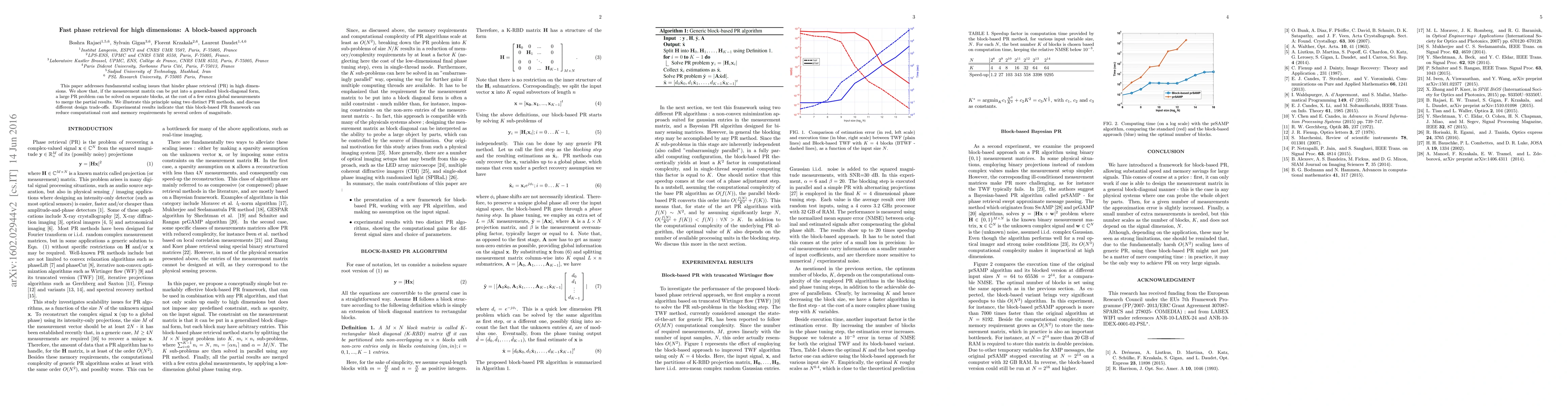 This paper addresses fundamental scaling issues that hinder phase retrieval (PR) in high dimensions. We show that, if the measurement matrix can be put into a generalized block-diagonal form, a large PR problem can be solved on separate blocks, at the cost of a few extra global measurements to merge the partial results. We illustrate this principle using two distinct PR methods, and discuss different design trade-offs. Experimental results indicate that this block-based PR framework can reduce computational cost and memory requirements by several orders of magnitude.
