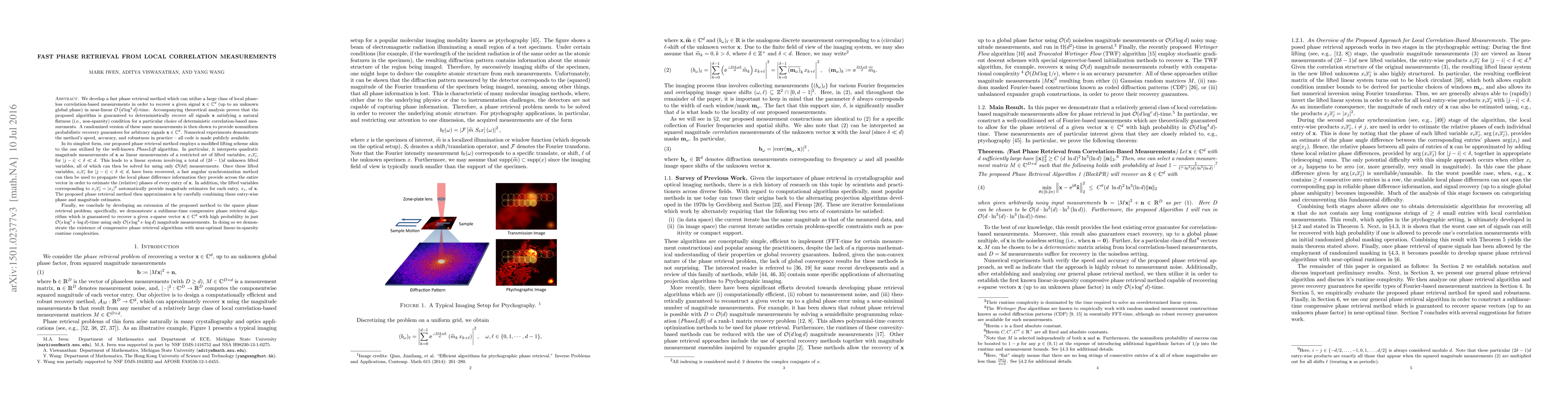 This paper presents a fast phase retrieval algorithm that efficiently recovers signals from local correlation measurements in near-linear time. The method guarantees deterministic recovery under certain conditions and probabilistic recovery for general signals, with extensions to sparse phase retrieval achieving near-optimal runtime complexities.