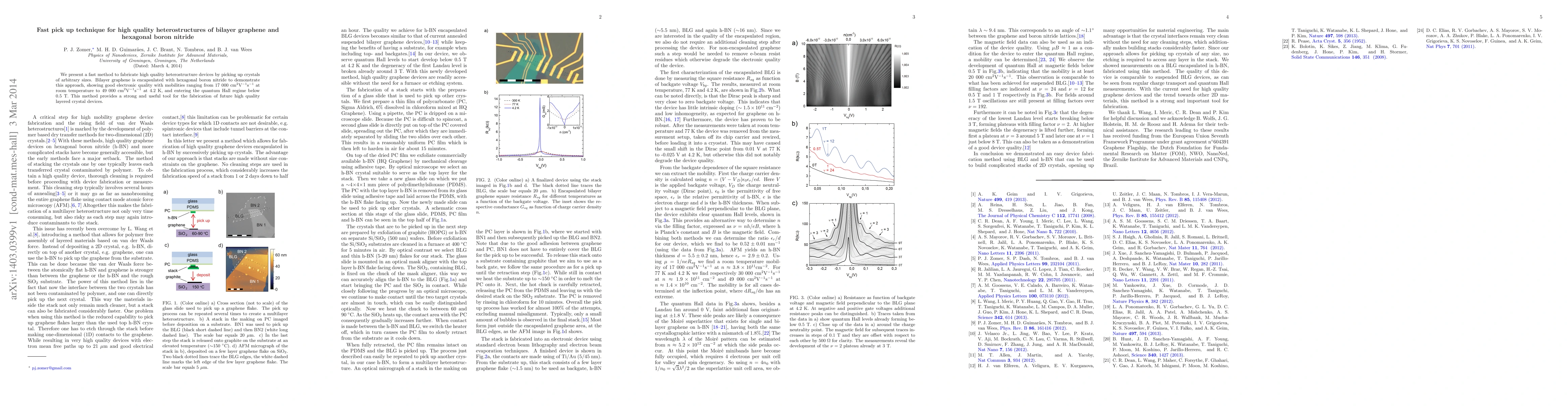 We present a fast method to fabricate high quality heterostructure devices by picking up crystals of arbitrary sizes. Bilayer graphene is encapsulated with hexagonal boron nitride to demonstrate this approach, showing good electronic quality with mobilities ranging from 17 000 cm^2/V/s at room temperature to 49 000 cm^2/V/s at 4.2 K, and entering the quantum Hall regime below 0.5 T. This method provides a strong and useful tool for the fabrication of future high quality layered crystal devices.