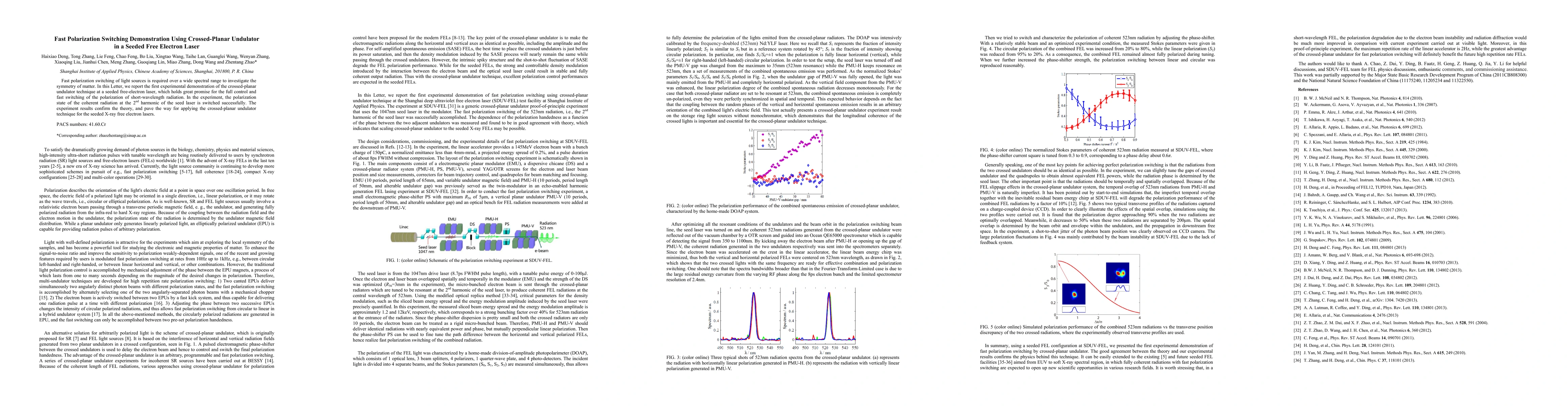 This paper demonstrates the first successful polarization switching using a crossed-planar undulator in a seeded free-electron laser, confirming the technique's potential for controlling and rapidly switching the polarization of short-wavelength radiation. The results pave the way for its application in seeded X-ray free electron lasers.