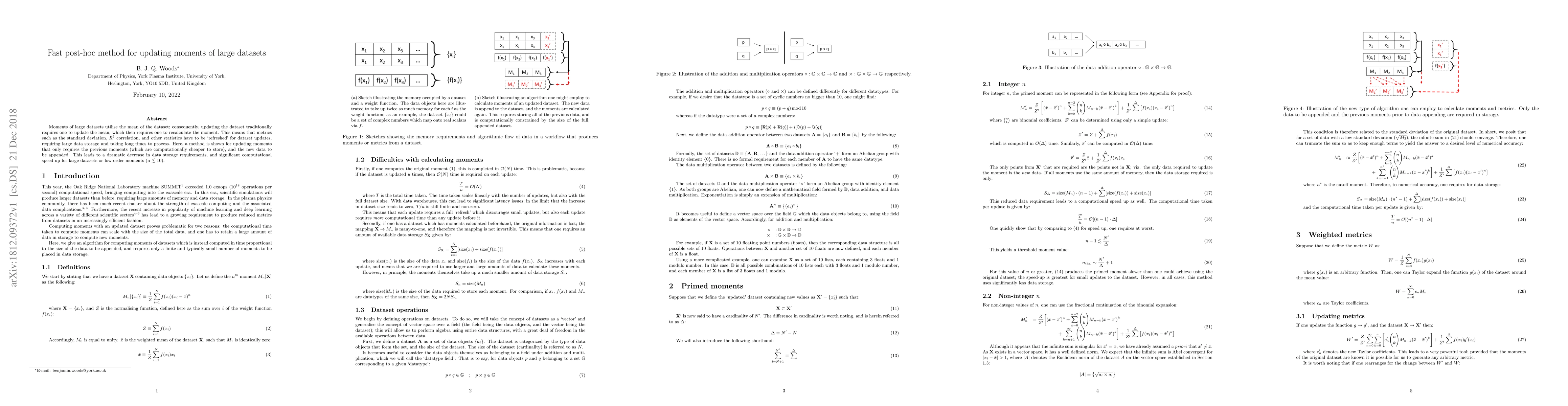Researchers developed a method to update moments of large datasets without recalculating them from scratch, reducing storage requirements and processing time, especially for low-order moments.