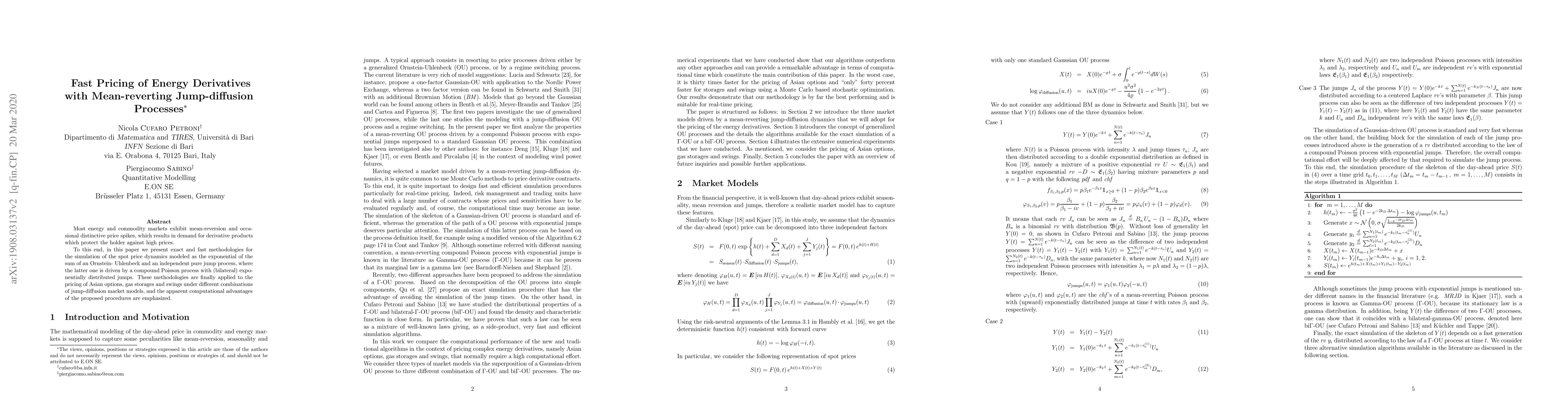 Researchers develop fast methods to price energy derivatives that account for mean-reversion and occasional price spikes in energy markets. Their approach offers significant computational advantages for pricing Asian options, gas storages, and swings under different market models.