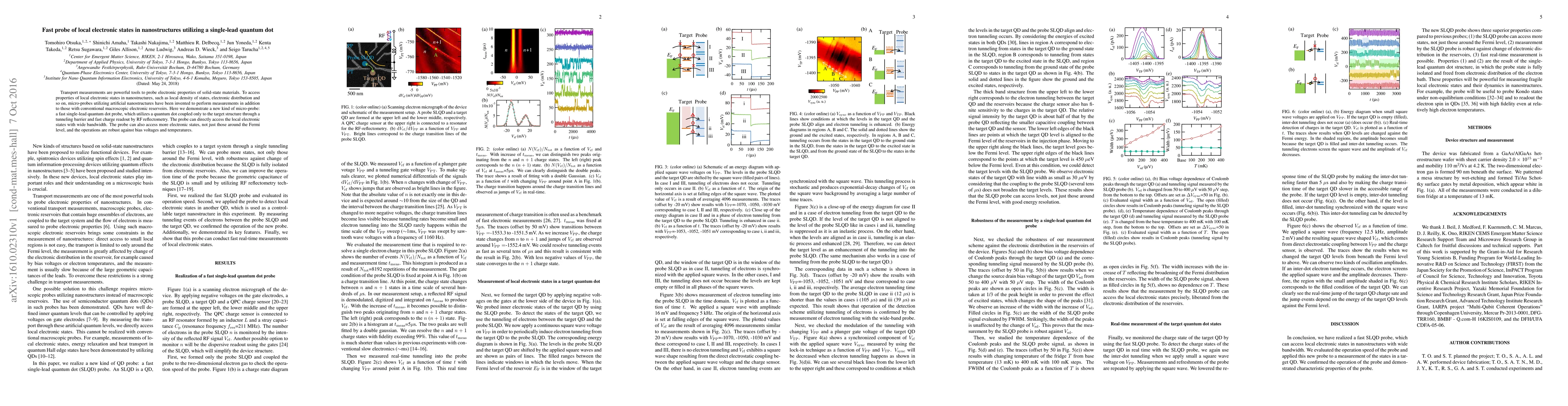 This paper introduces a fast single-lead quantum dot probe for high-bandwidth measurements of local electronic states in nanostructures, utilizing RF reflectometry for rapid charge readout. The probe offers robust access to electronic states beyond just those near the Fermi level, independent of bias voltages and temperature variations.