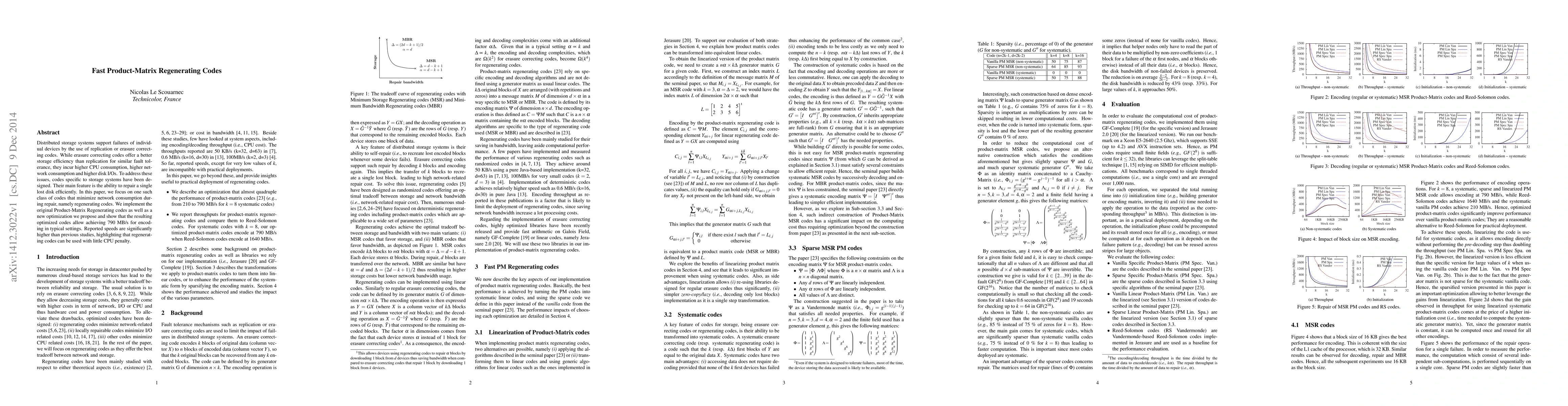 Distributed storage systems support failures of individual devices by the use of replication or erasure correcting codes. While erasure correcting codes offer a better storage efficiency than replication for similar fault tolerance, they incur higher CPU consumption, higher network consumption and higher disk I/Os. To address these issues, codes specific to storage systems have been designed. Their main feature is the ability to repair a single lost disk efficiently. In this paper, we focus on one such class of codes that minimize network consumption during repair, namely regenerating codes. We implement the original Product-Matrix Regenerating codes as well as a new optimization we propose and show that the resulting optimized codes allow achieving 790 MB/s for encoding in typical settings. Reported speeds are significantly higher than previous studies, highlighting that regenerating codes can be used with little CPU penalty.
