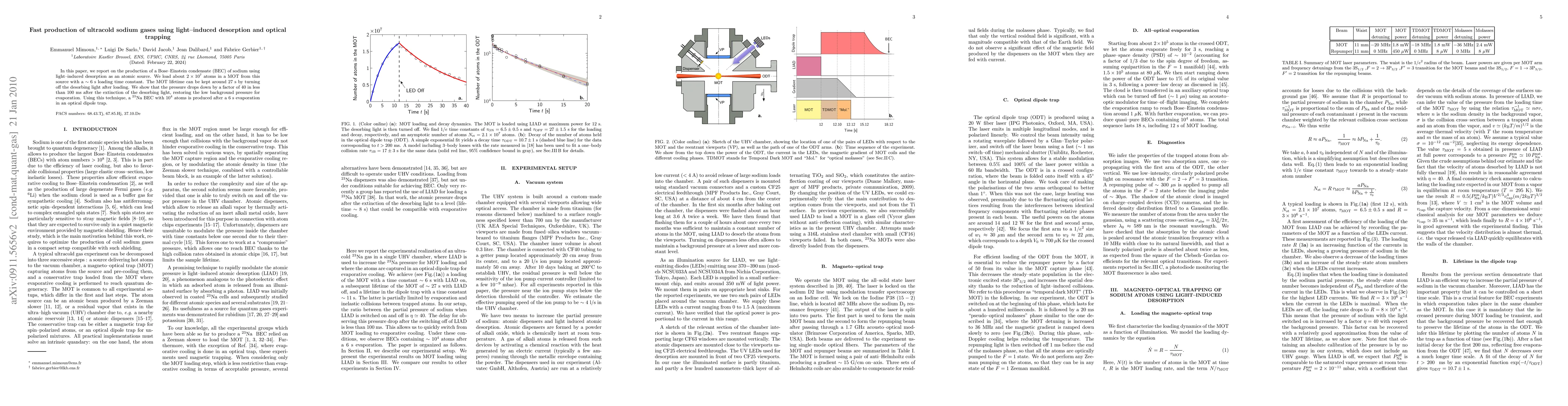 This paper details a method for quickly producing a Bose-Einstein condensate (BEC) of sodium through light-induced desorption, achieving a BEC with 10^4 atoms after 6 seconds of evaporation, and maintaining a low background pressure post-desorption.