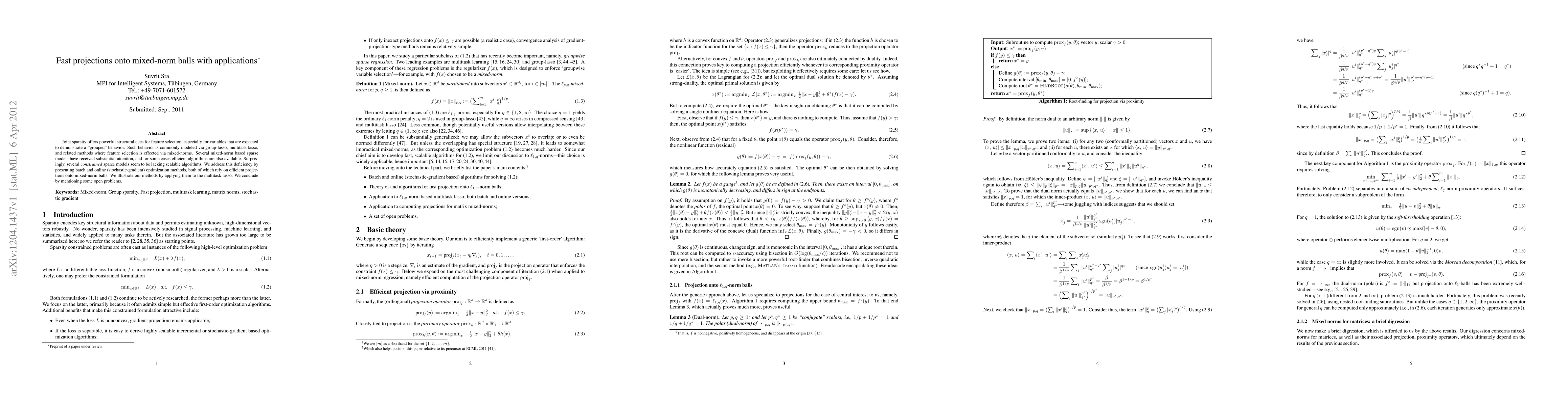 This paper presents efficient algorithms for projecting onto mixed-norm balls to solve sparse models like multitask lasso, addressing a gap in scalable methods.