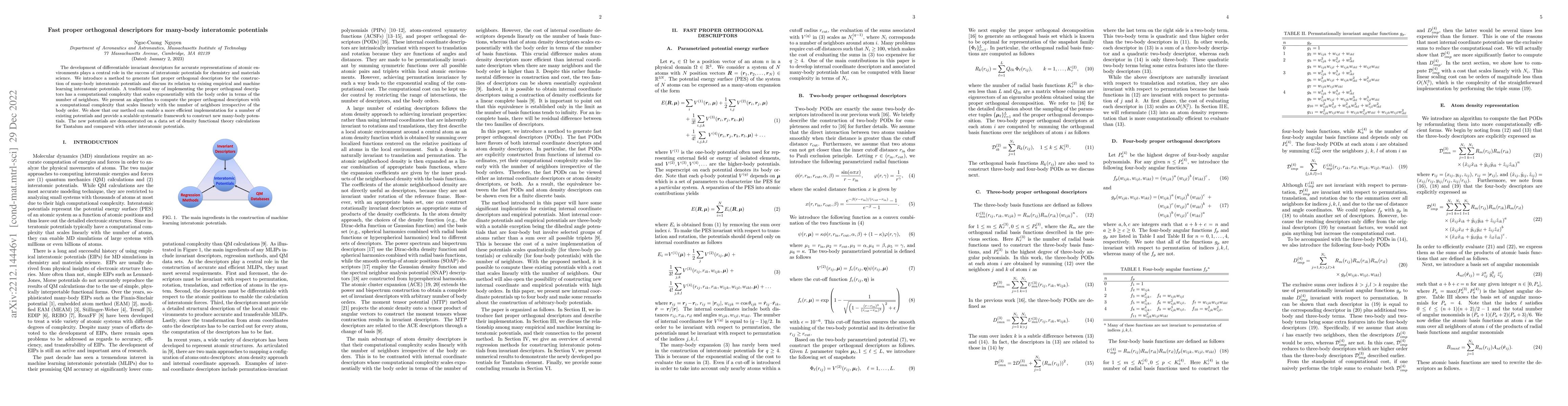 This paper introduces a novel algorithm for generating fast proper orthogonal descriptors to construct many-body interatomic potentials, significantly reducing computational complexity from exponential to linear scaling with the number of neighbors. The method is demonstrated to enable more efficient implementations and scalable potential construction, as shown through comparisons with density functional theory calculations for Tantalum.