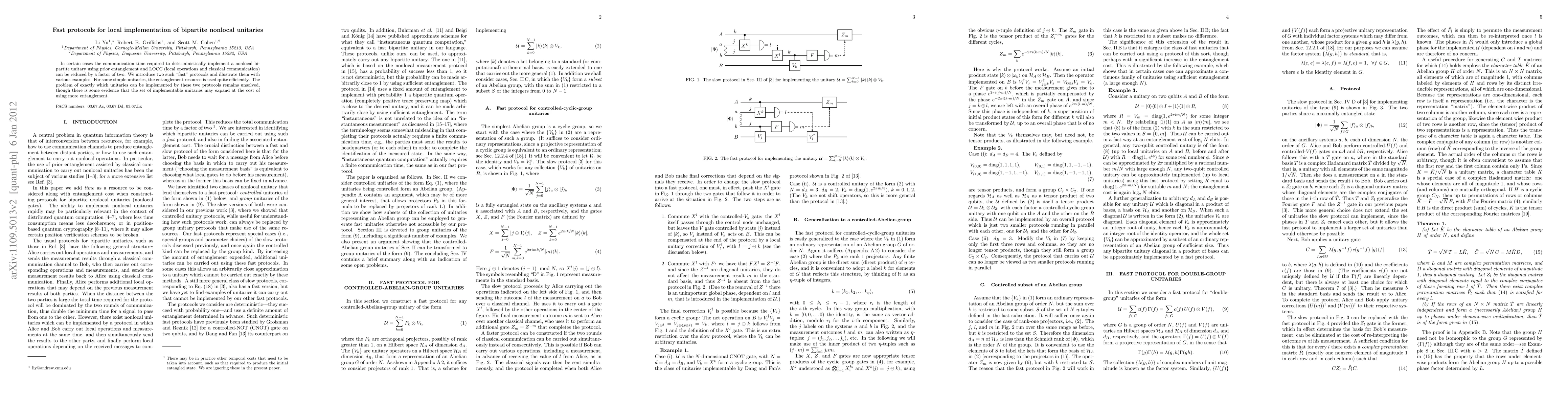 This paper presents two protocols that can implement bipartite nonlocal unitaries faster than traditional LOCC methods, reducing communication time by half. While the exact set of implementable unitaries remains undetermined, the protocols show efficient use of entanglement for simple cases.