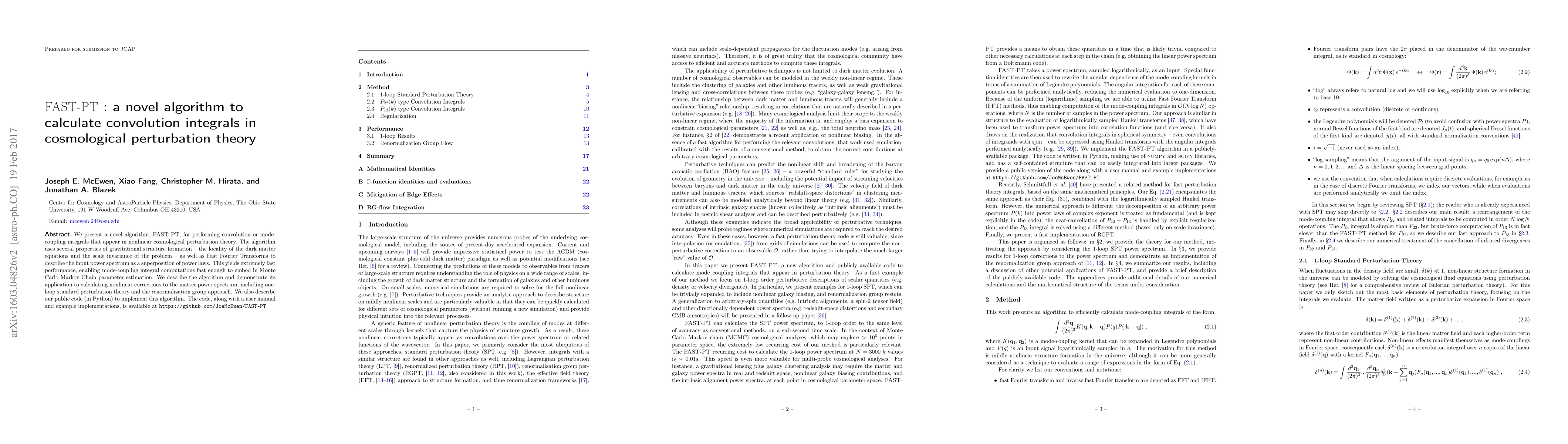 FAST-PT is a novel algorithm designed to efficiently compute convolution integrals in cosmological perturbation theory, leveraging Fast Fourier Transforms and properties of gravitational structure formation for rapid performance. The algorithm enables the calculation of nonlinear corrections to the matter power spectrum, facilitating its use in Monte Carlo Markov Chain parameter estimation.