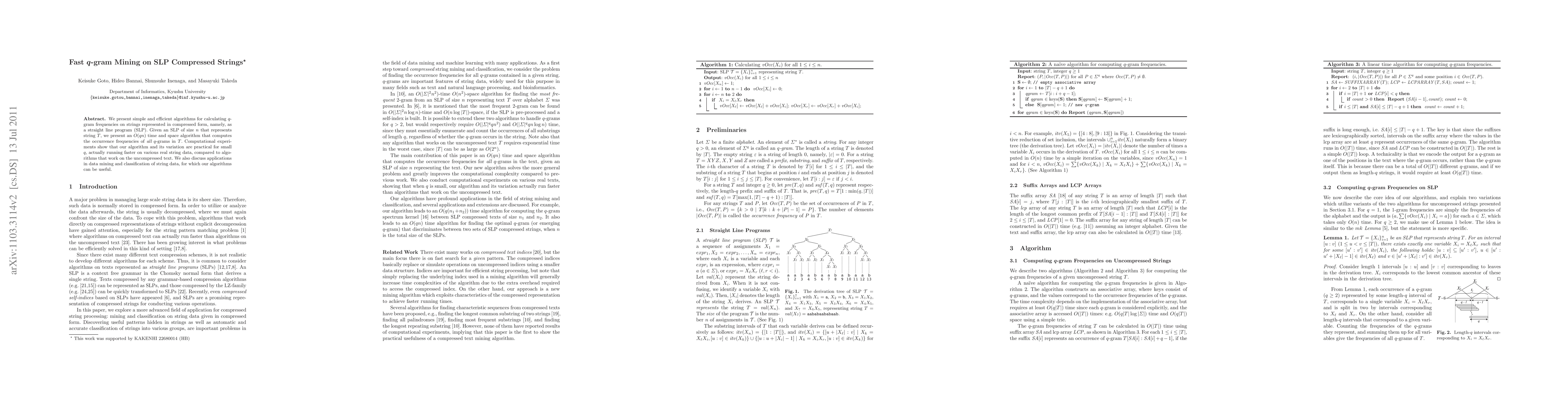 We present simple and efficient algorithms for calculating $q$-gram frequencies on strings represented in compressed form, namely, as a straight line program (SLP). Given an SLP of size $n$ that represents string $T$, we present an $O(qn)$ time and space algorithm that computes the occurrence frequencies of $q$-grams in $T$. Computational experiments show that our algorithm and its variation are practical for small $q$, actually running faster on various real string data, compared to algorithms that work on the uncompressed text. We also discuss applications in data mining and classification of string data, for which our algorithms can be useful.