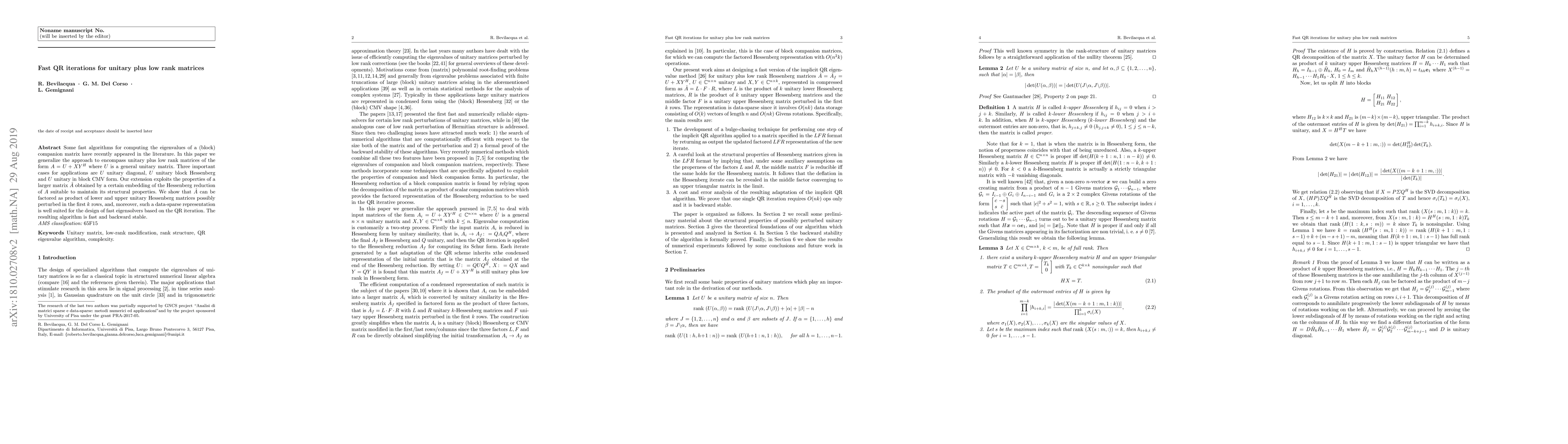 This paper generalizes fast algorithms for computing eigenvalues of matrices of the form $A = U + XY^H$, where $U$ is a general unitary matrix, by exploiting a data-sparse representation of the Hessenberg reduction. The proposed method is fast and backward stable, leveraging QR/QZ iterations for efficient eigensolver design.