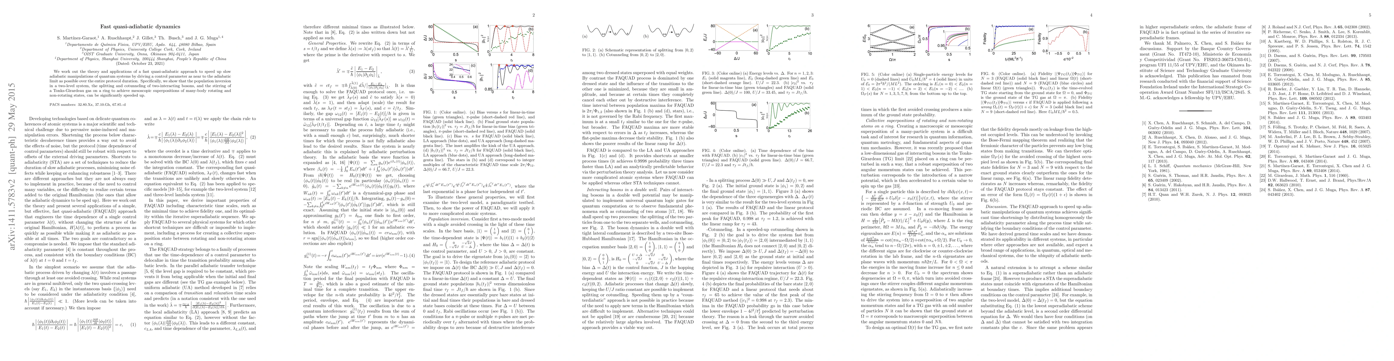 We work out the theory and applications of a fast quasi-adiabatic approach to speed up slow adiabatic manipulations of quantum systems by driving a control parameter as near to the adiabatic limit as possible over the entire protocol duration. Specifically, we show that the population inversion in a two-level system, the splitting and cotunneling of two-interacting bosons, and the stirring of a Tonks-Girardeau gas on a ring to achieve mesoscopic superpositions of many-body rotating and non-rotating states, can be significantly speeded up.