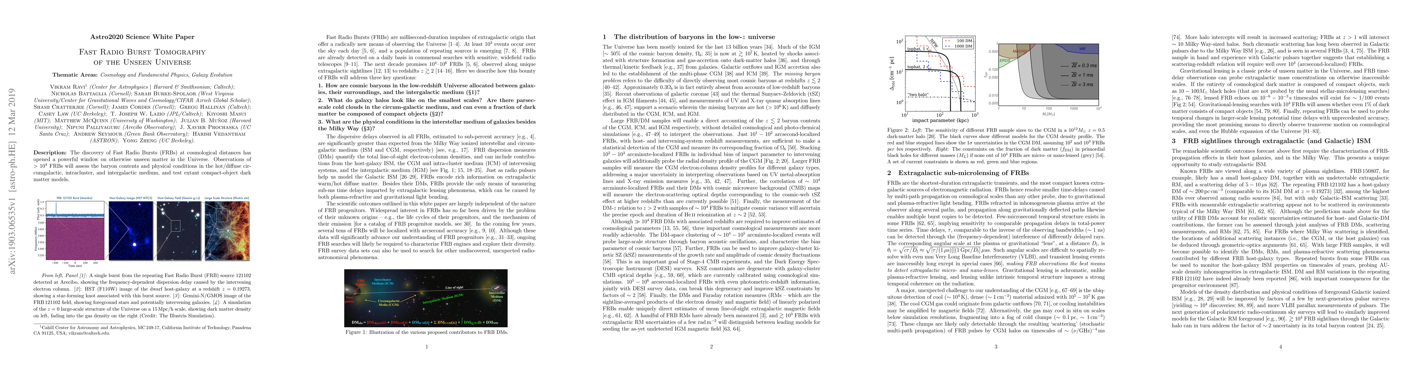The paper discusses the prospects and requirements for Fast Radio Burst (FRB) observations in the 2020s, focusing on their potential to probe unseen matter in the Universe, including the circumgalactic, intracluster, and intergalactic medium.