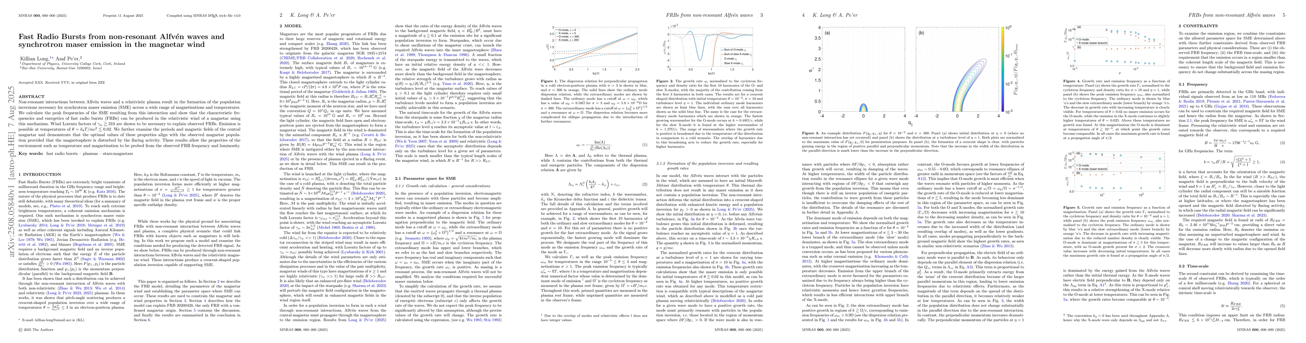 Non-resonant interactions between Alfv\'en waves and a relativistic plasma result in the formation of the population inversions necessary for synchrotron maser emission (SME) across a wide range of magnetisations and temperatures. We calculate the peak frequencies of the SME resulting from this interaction and show that the characteristic frequencies and energetics of fast radio bursts (FRBs) can be produced in the relativistic wind of a magnetar using this mechanism. Wind Lorentz factors of $\gamma_w\gtrsim310$ are shown to be necessary to explain observed FRBs. Emission is possible at temperatures of $\theta = k_bT/mc^2\lesssim 0.02$. We further examine the periods and magnetic fields of the central magnetar and demonstrate that the optimal values of these properties align with the observed magnetar population provided that the magnetosphere is disturbed by the flaring activity. These results allow the properties of the environment such as temperature and magnetisation to be probed from the observed FRB frequency and luminosity.