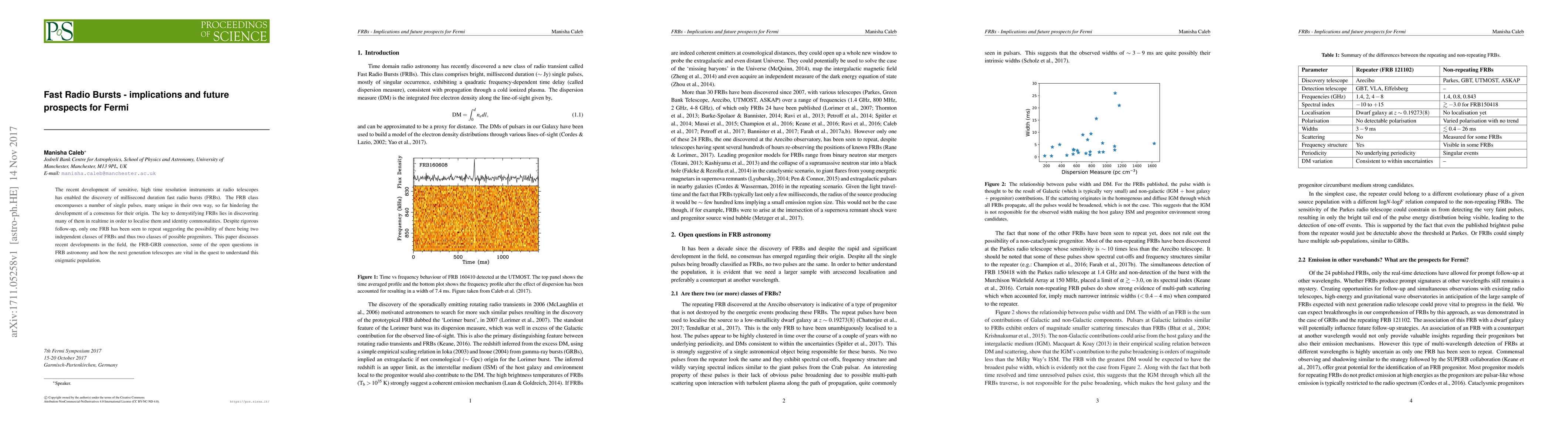 The paper emphasizes the potential of FRBs as cosmological probes and discusses the implications of the single repeating FRB, suggesting the existence of distinct FRB classes and progenitors.