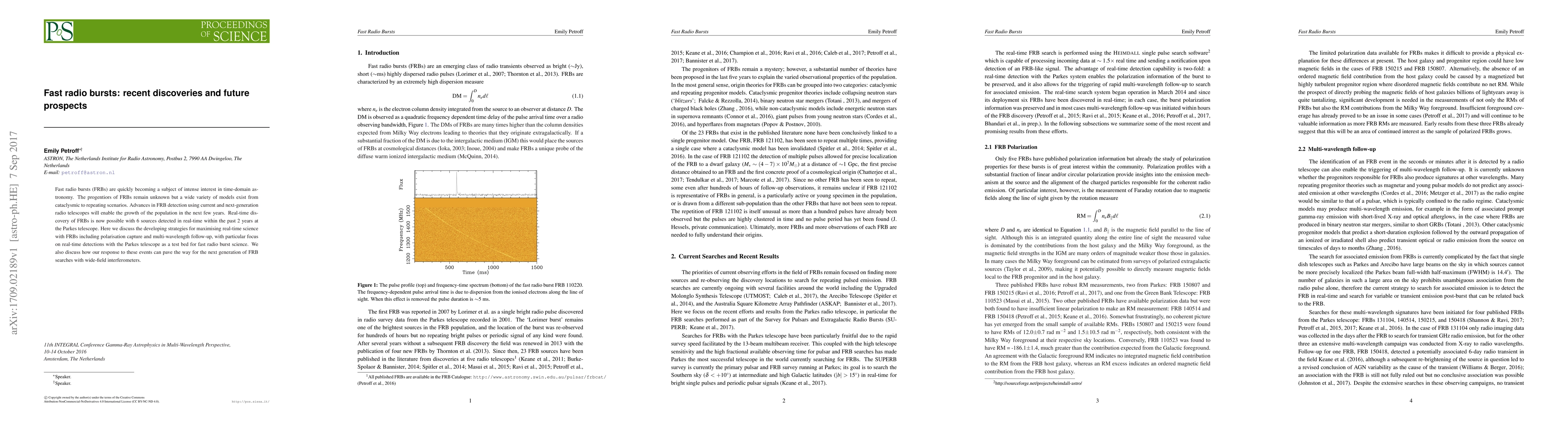 This paper reviews recent discoveries in fast radio bursts (FRBs) and explores future prospects for their detection and study, emphasizing the potential of next-generation radio telescopes and real-time detection strategies, particularly using the Parkes telescope, to advance our understanding of these enigmatic phenomena.